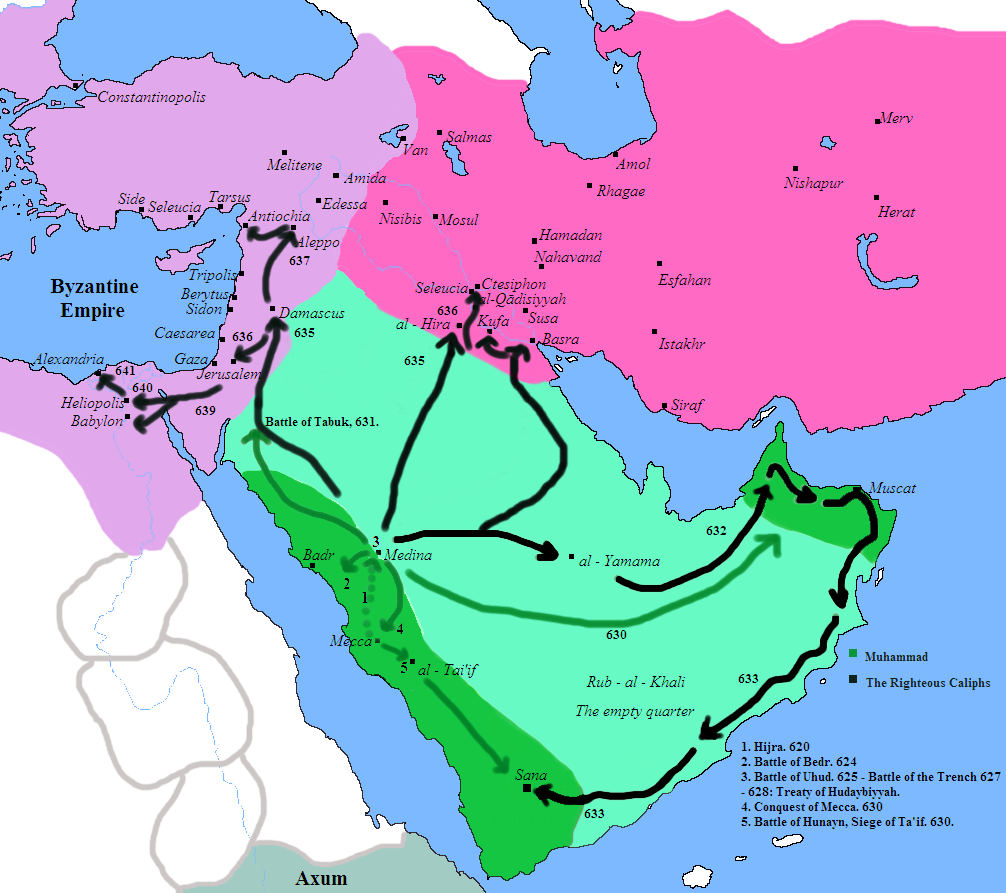 Conquests of Muhammad and the Rashidun 630-641 Historical Middle East Conquests of Prophet Muhammad and the Rashidun Caliphate, 630-641.