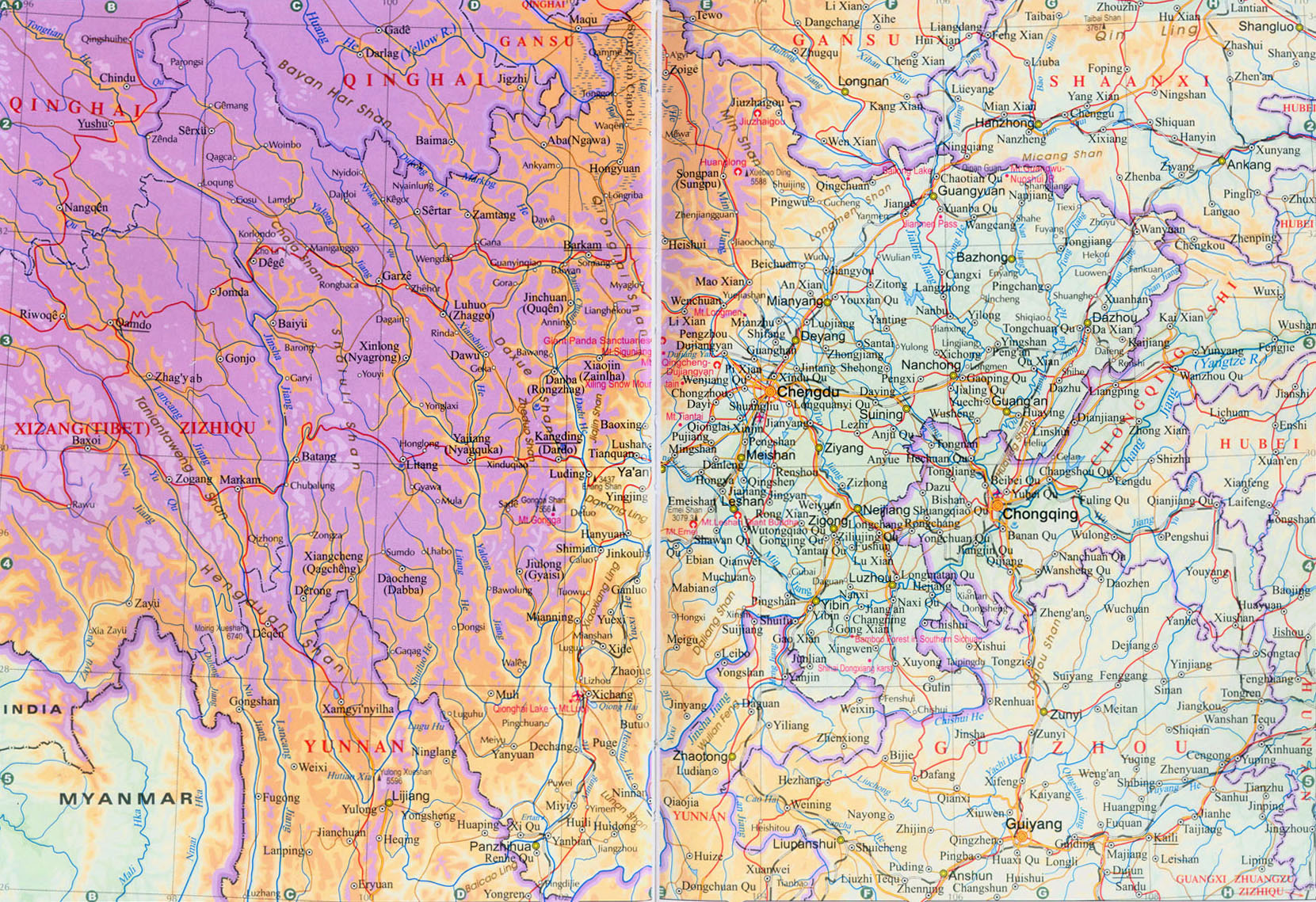 Sichuan borders Qinghai to the northwest, Gansu to the north, Shaanxi to the northeast, Chongqing to the east, Guizhou to the southeast, Yunnan to the south, and the Tibet Autonomous Region to the west.