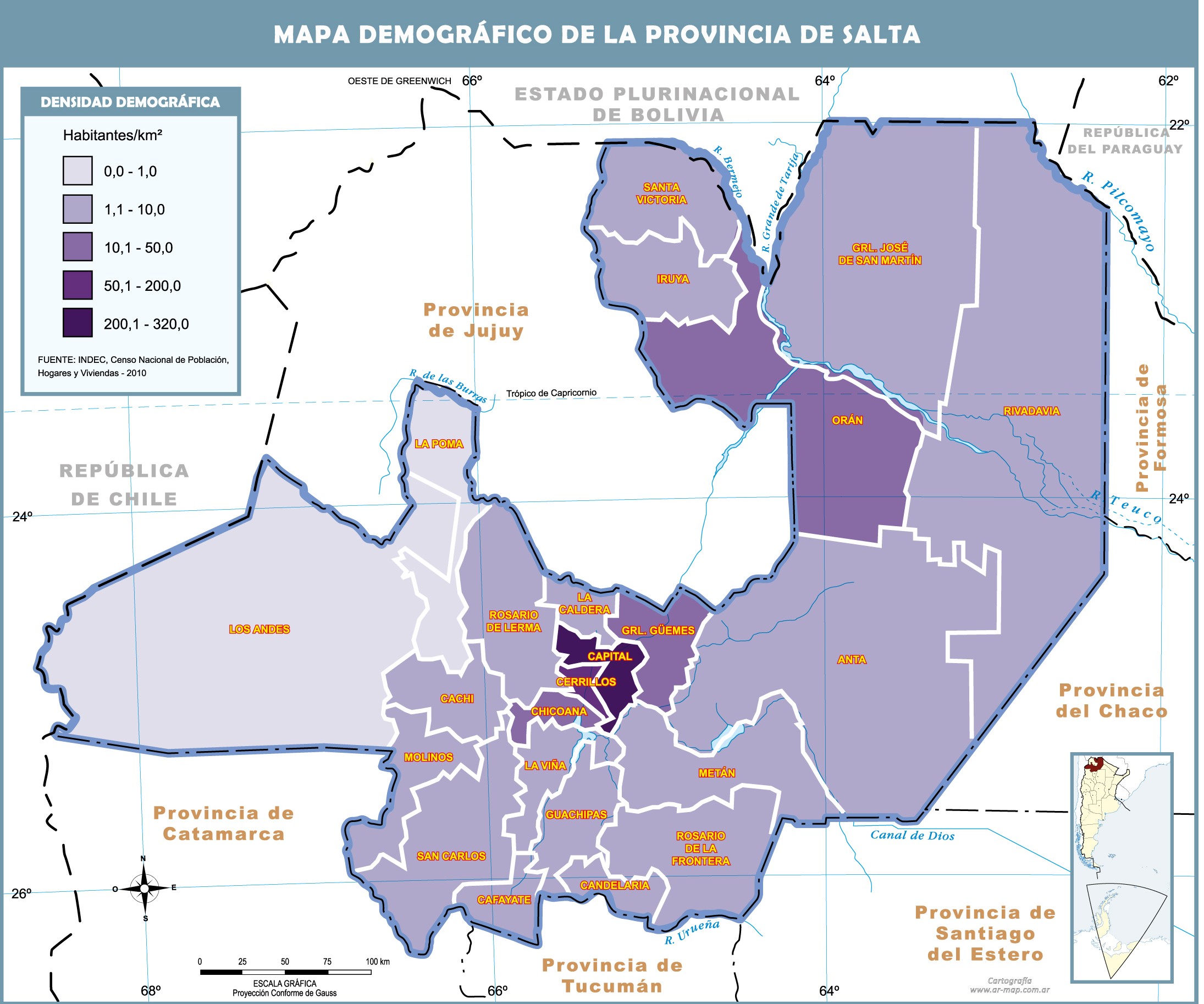 Demographic map of the Province of Salta, Argentina