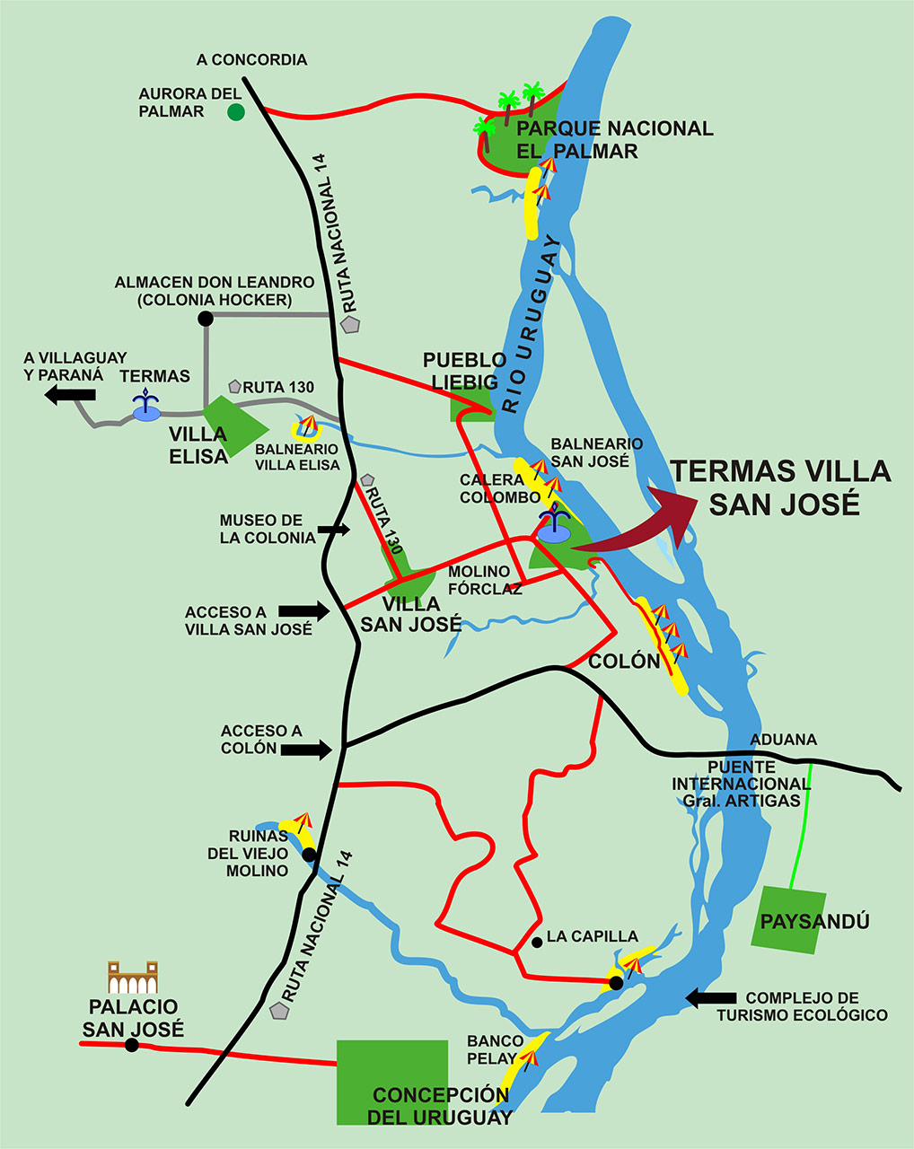 Tourist map of the City of Colón, Entre Ríos, Argentina.