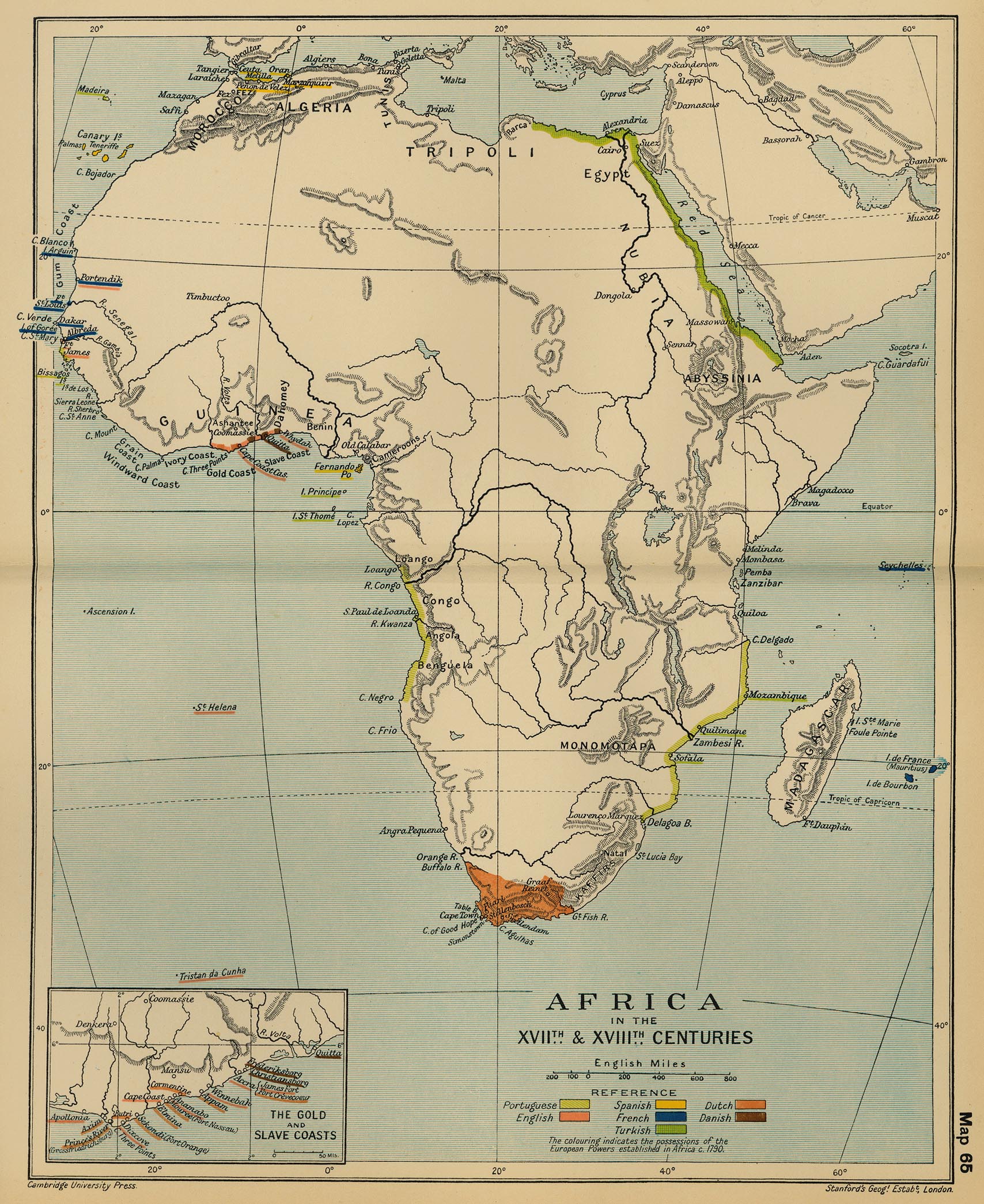 África en los siglos XVII y XVIII Histórico África "El Atlas de Historia Moderna de Cambridge", 1912 África en los siglos XVII y XVIII - Costa de los esclavos y Costa de Oro