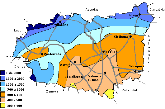 Precipitaciones anuales en la Provincia de León Temático León Precipitaciones anuales en mm. en la Provincia de León