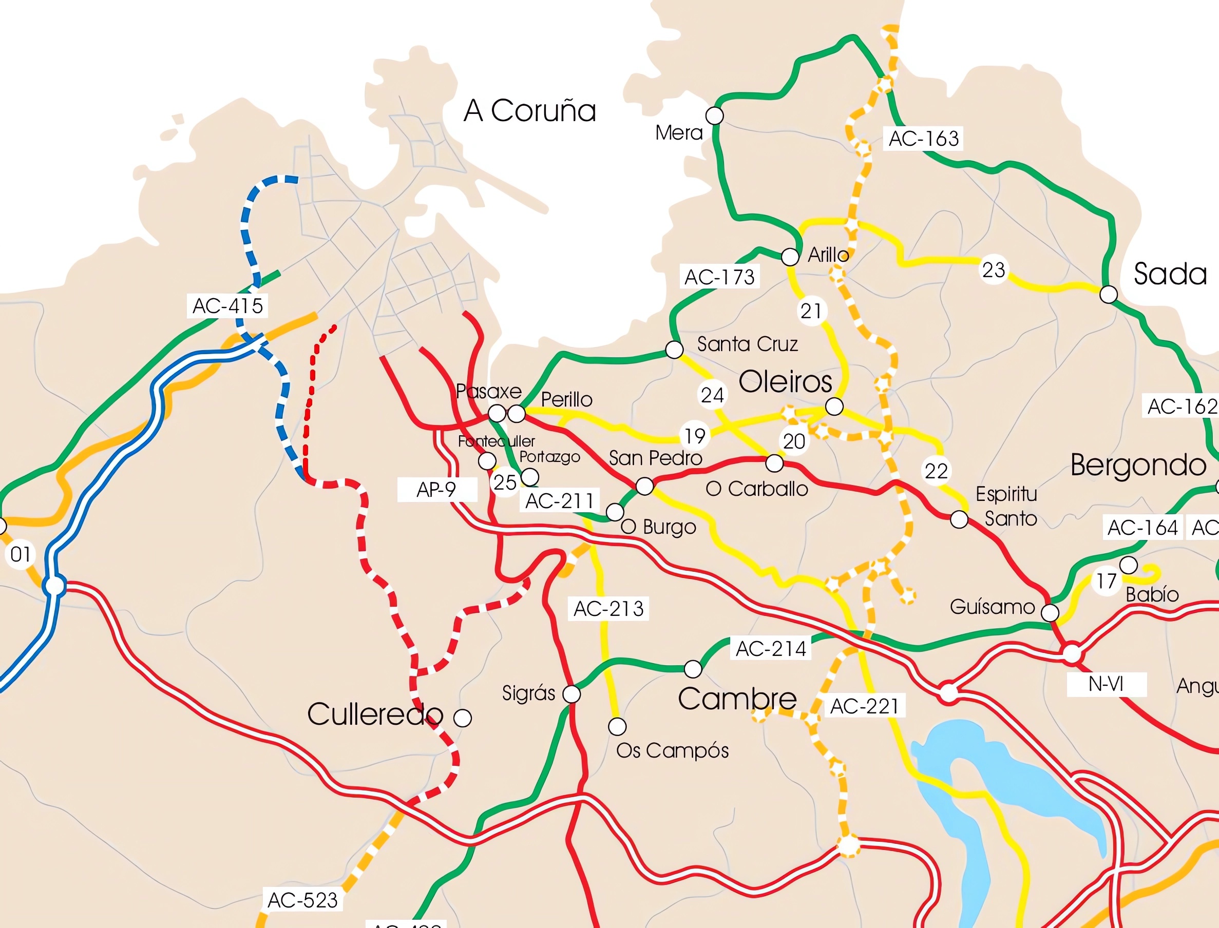 AC‑10 (Túnel de Eirís): 2,9 km, conecta el puerto de Oza con AC‑11 (Alfonso Molina) dentro de la ciudad.