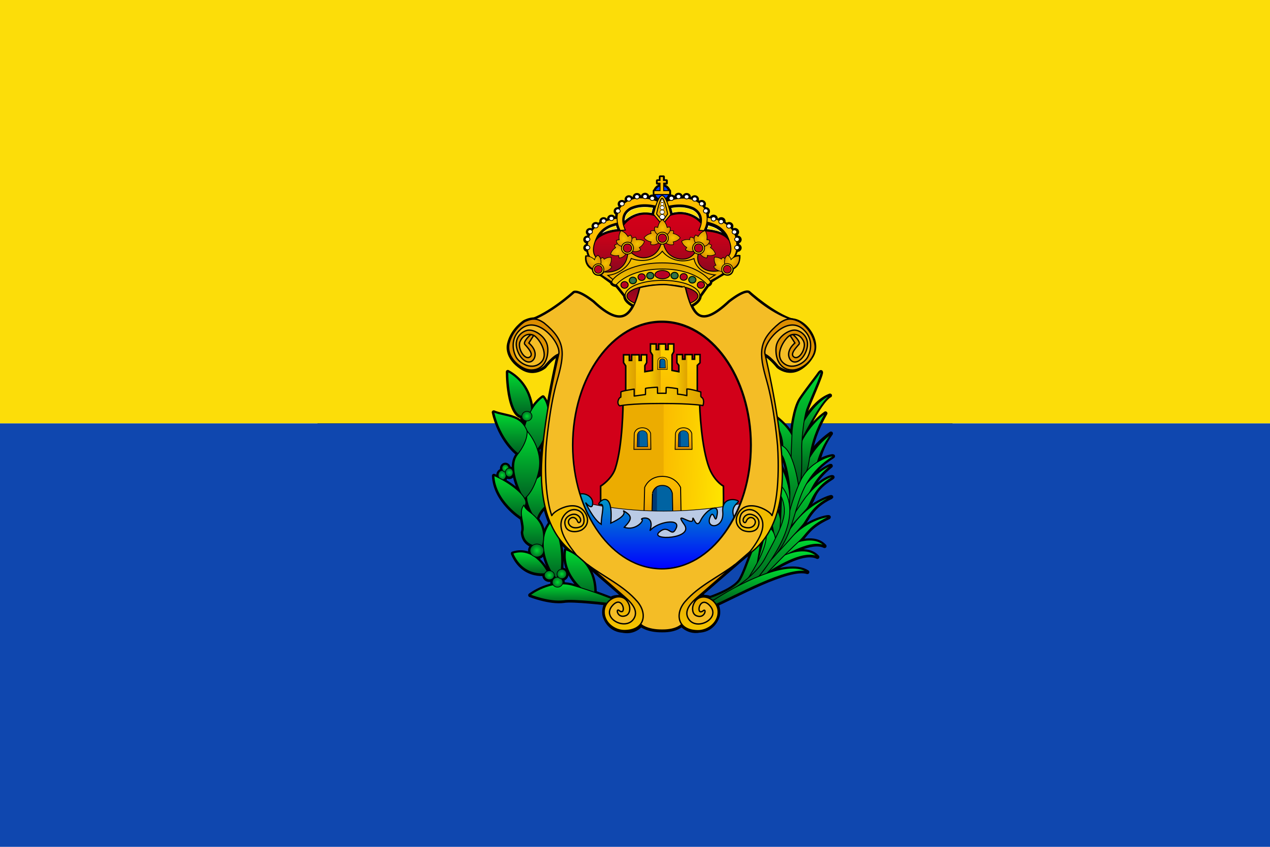 Bandera de Algeciras, de paño rectangular dividido horizontalmente en dos partes iguales, de color oro la superior y azul marino la inferior. Lleva sobrepuesto, en su centro, el Escudo del Municipio. (Sin aprobación oficial, adoptada la de la provincia marítima propia)