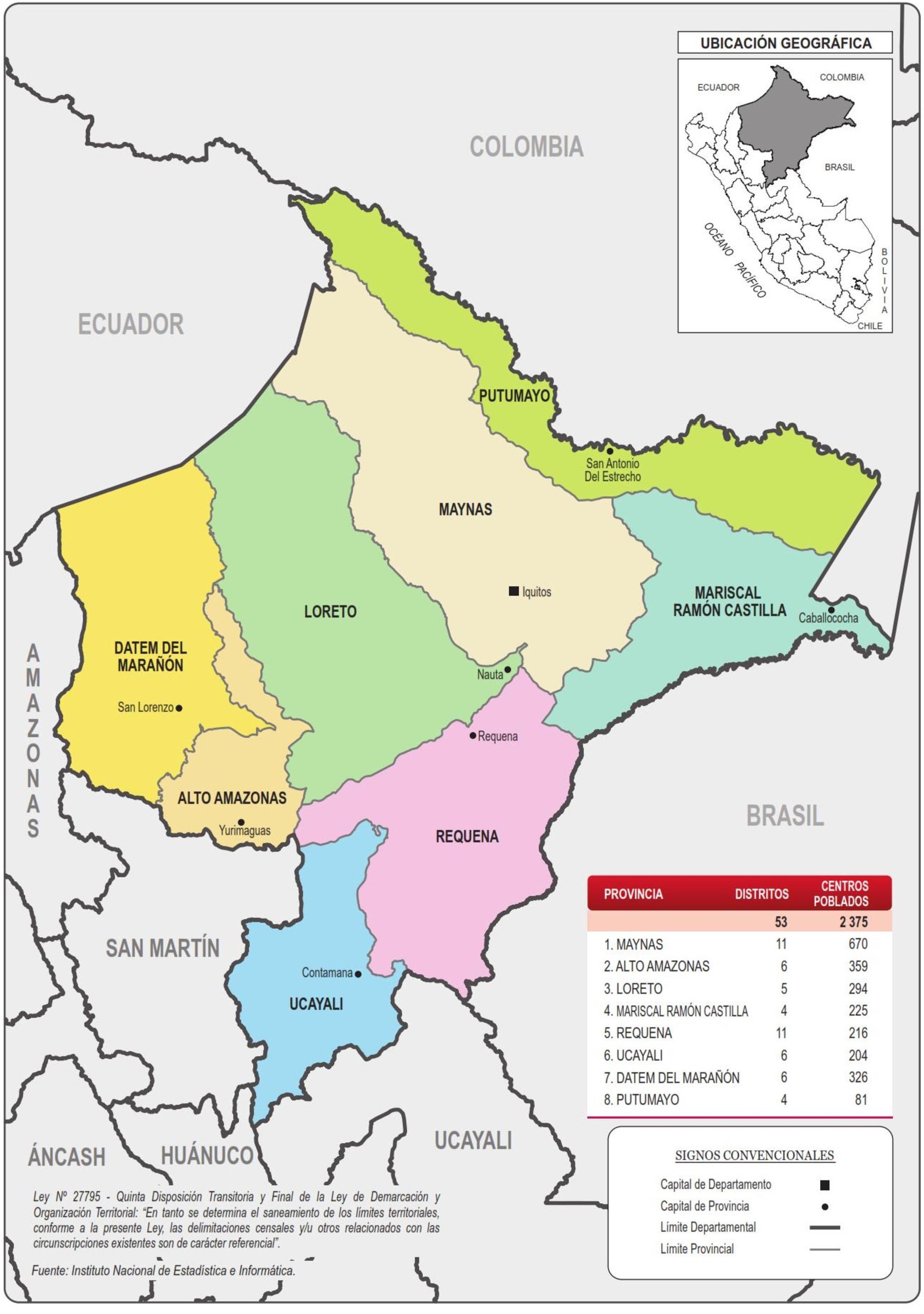 | Las provincias del departamento de Loreto | ||||||||