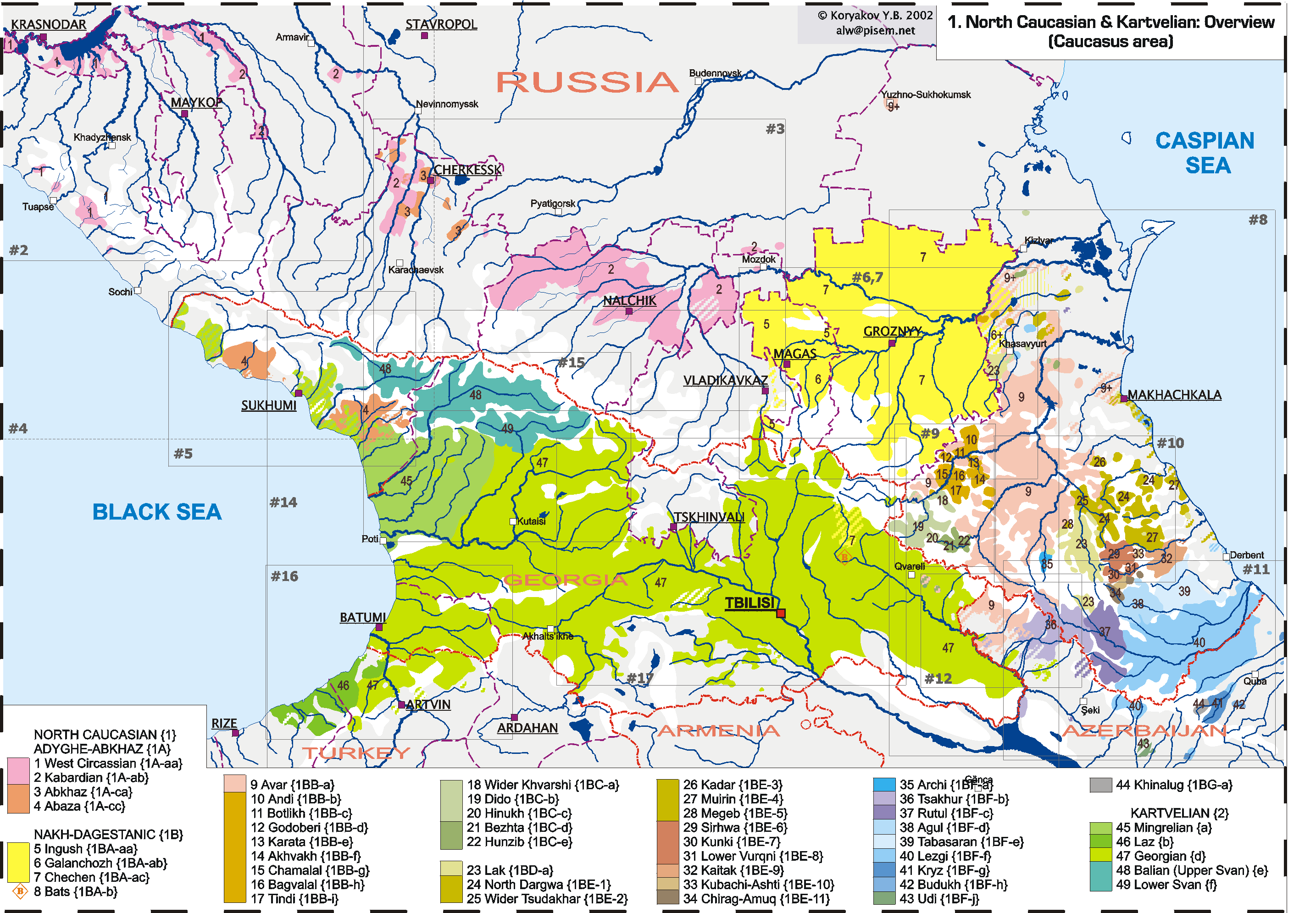 Son lenguas que solo se hablan en el Cáucaso (no tienen parientes externos claros). Se dividen en tres grandes grupos:
