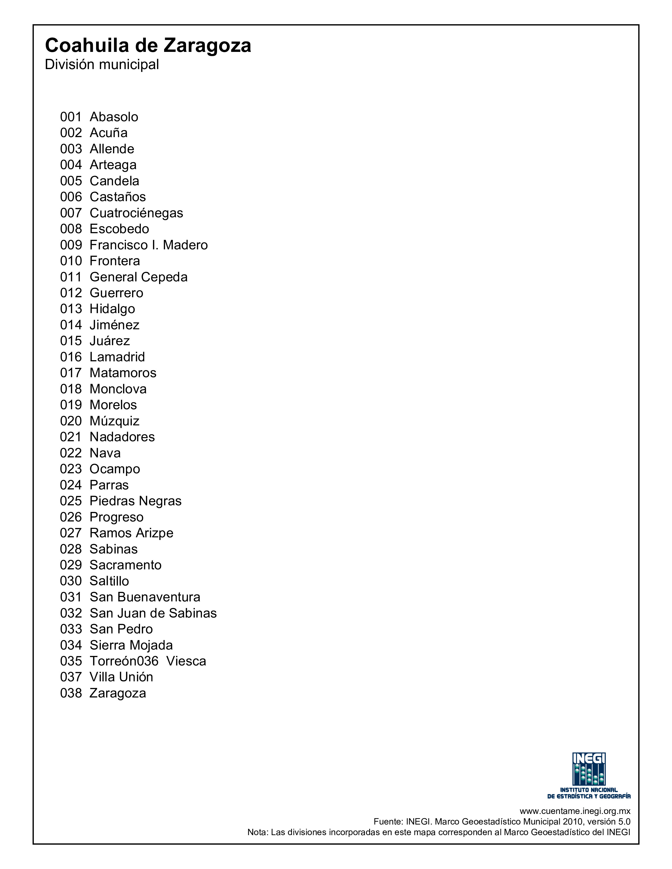 Otros documentos de interés geográfico : « ¿Cuáles son los municipios de Coahuila? »