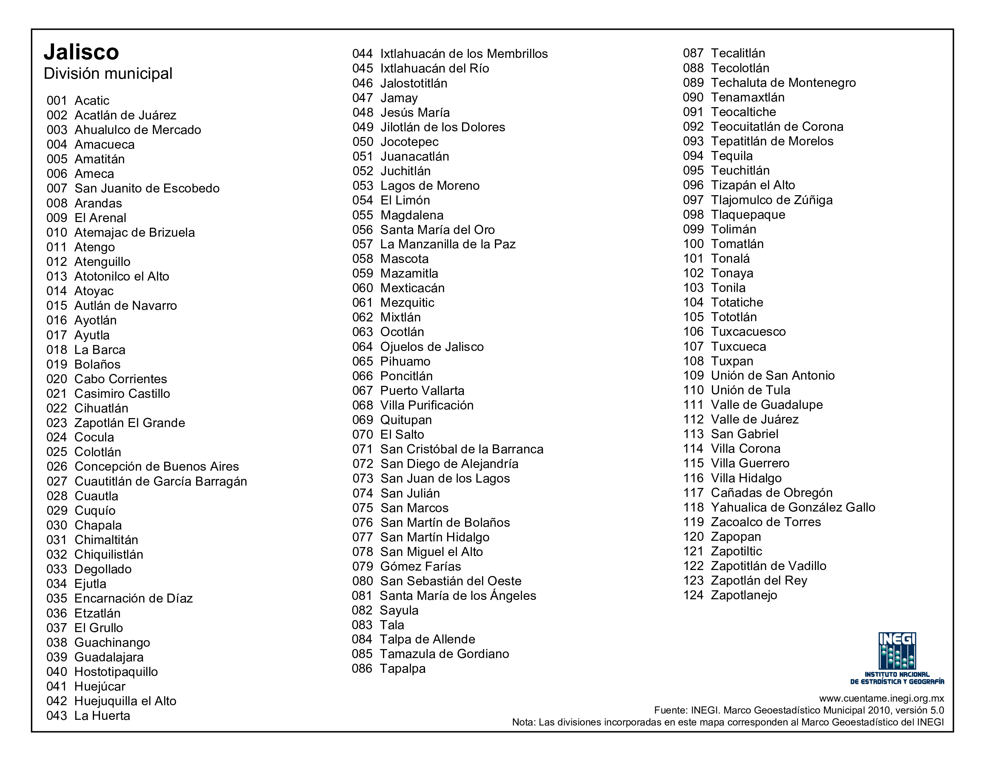 Lista de los municipios de Jalisco