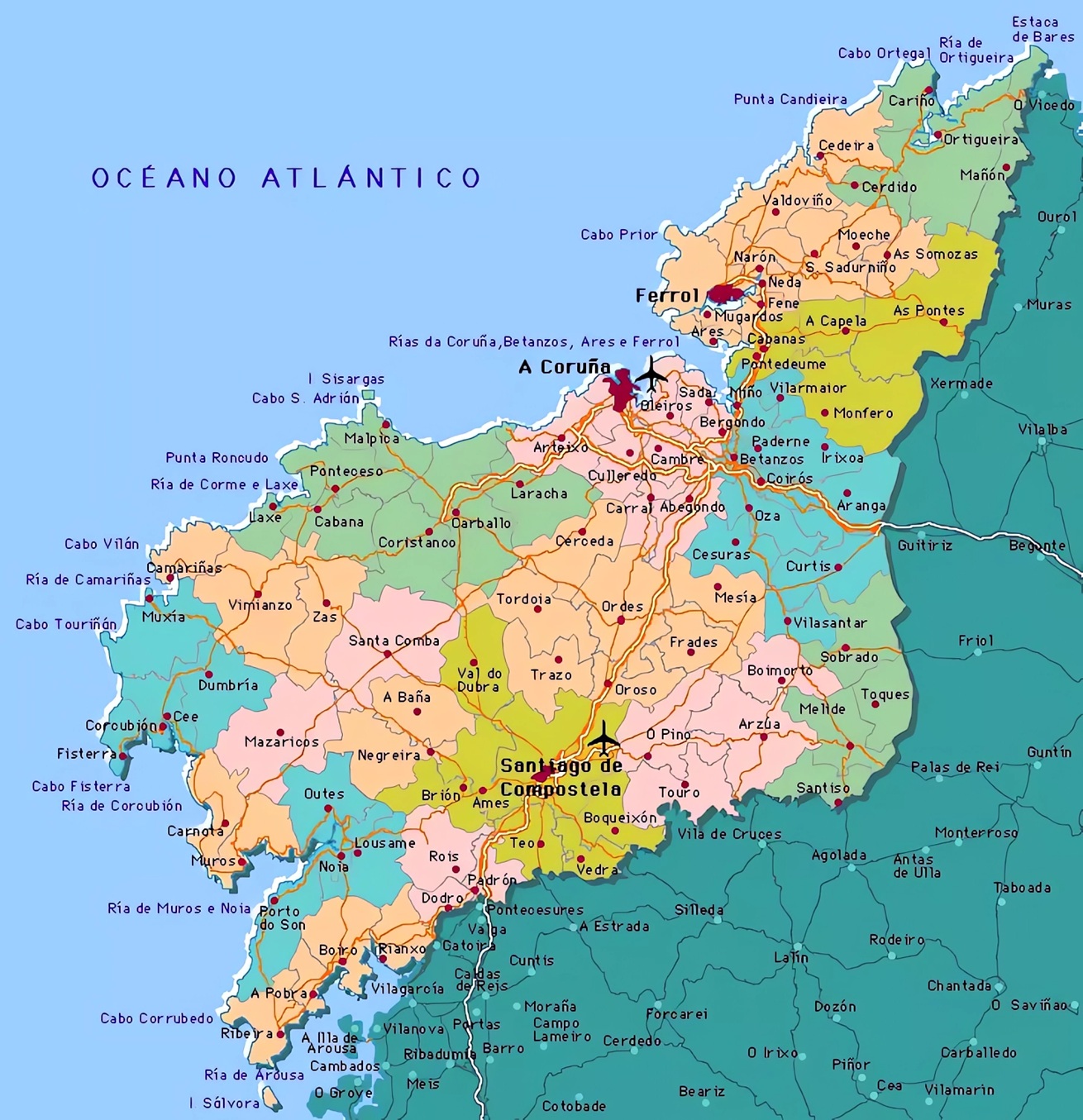 Listado con los 93 municipios que forman la provincia de La Coruña: