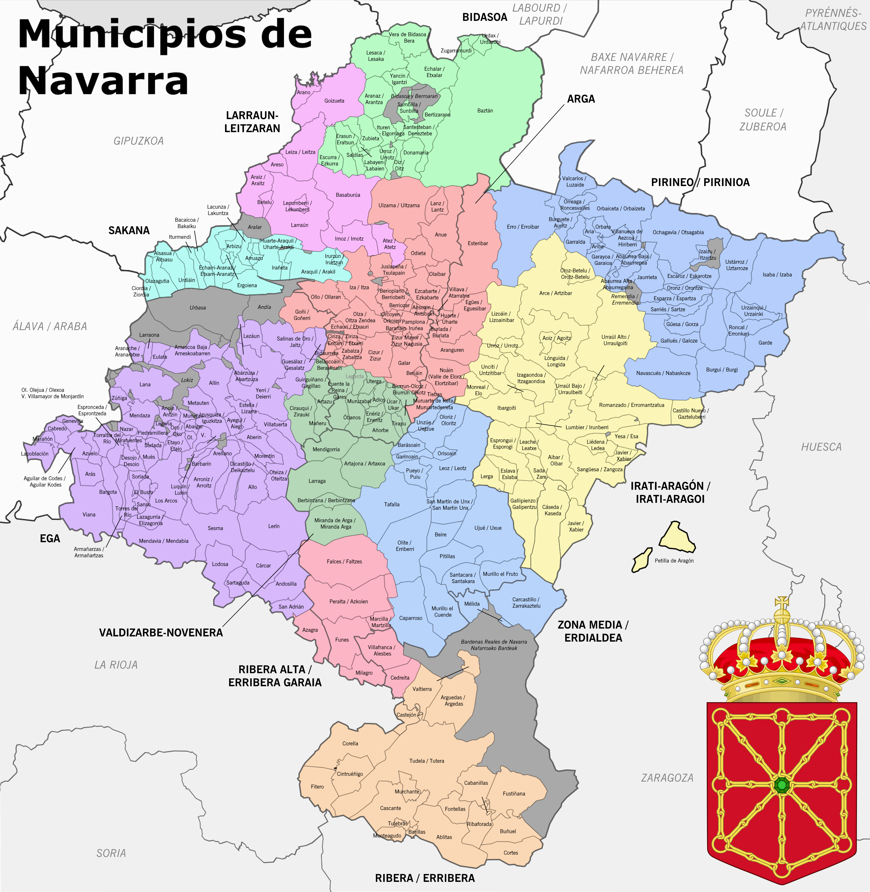 Lista de los 273 municipios de la Comunidad Foral de Navarra: Con el cuadro existente en cada cabecera se pueden reordenar los municipios por orden alfabético, merindad, zona lingüística, superficie, población, densidad de población o tasa de crecimiento demográfico de los últimos años.