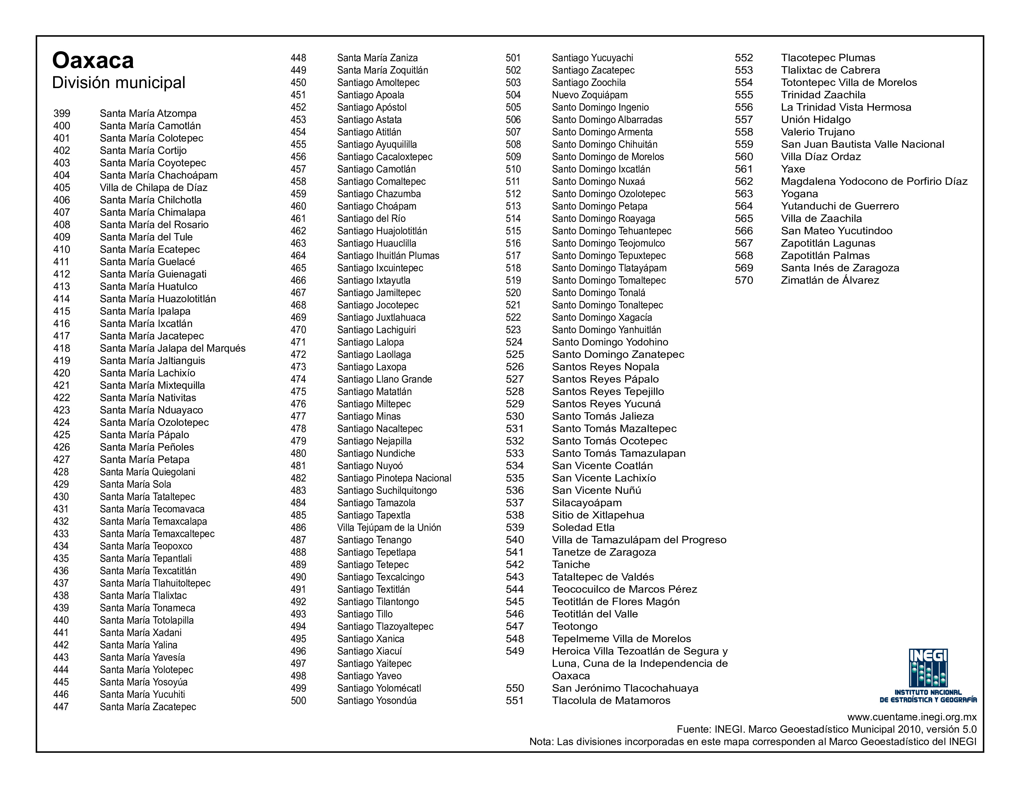 | Oaxaca de Juárez | Oaxaca de Juárez | 270 955 | 89.5 |