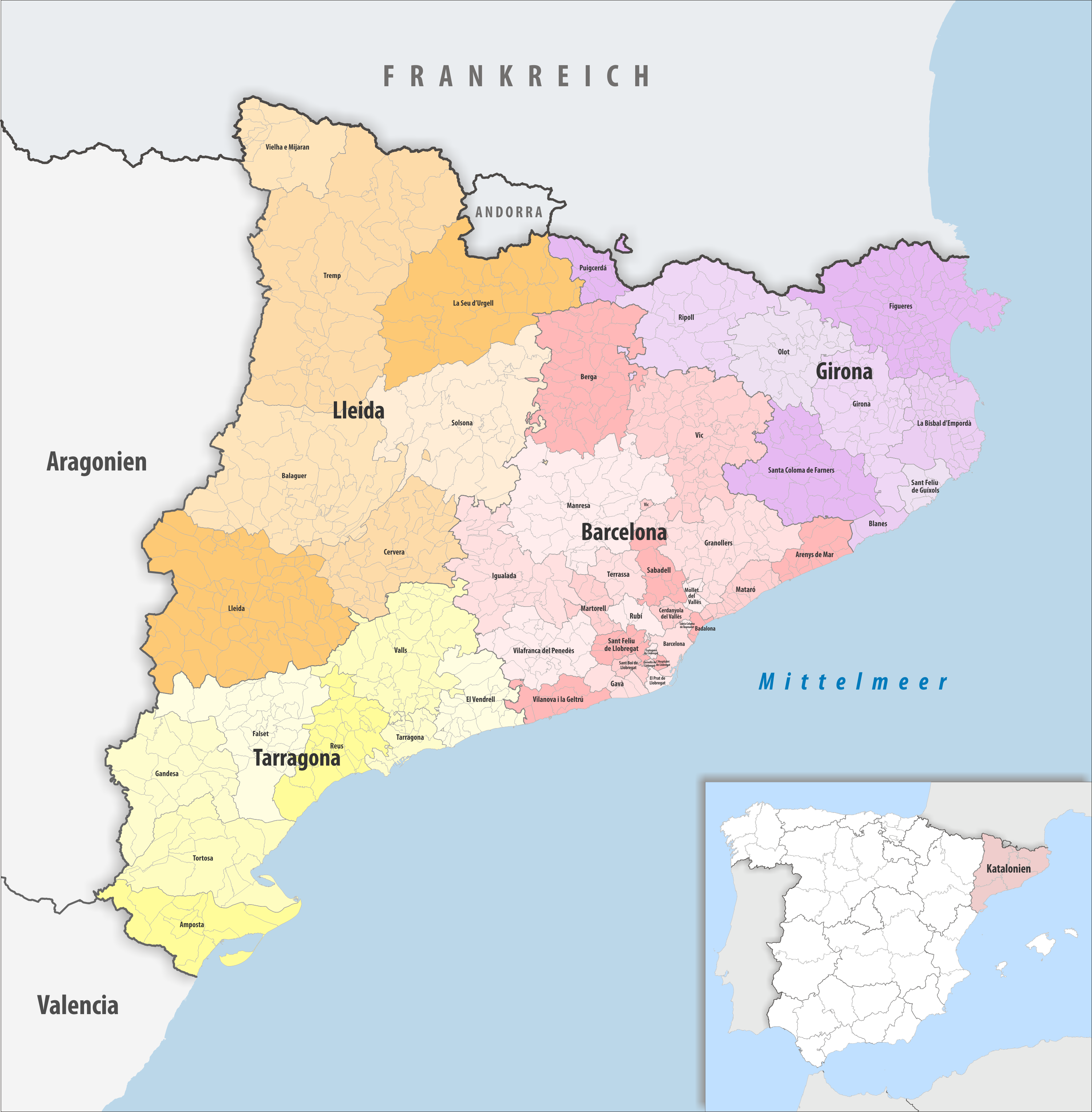 En Cataluña existen 49 partidos judiciales de los cuales 25 pertenecen a la provincia de Barcelona, 9 a la de Gerona, 7 a la de Lérida y 8 están en la provincia de Tarragona.