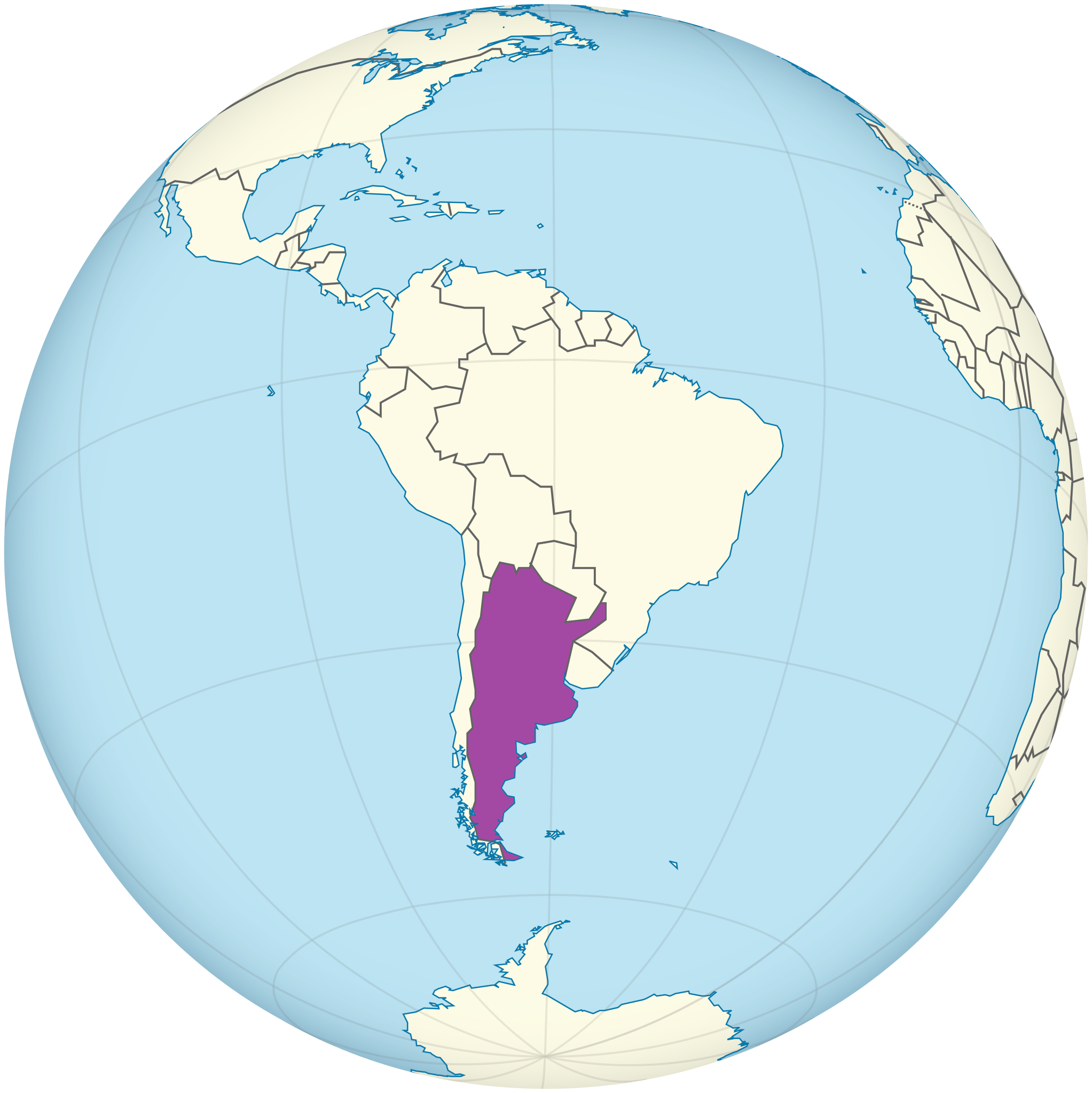 Argentina (en violeta en los mapas de arriba y abajo) se encuentra en el extremo sur de América del Sur.