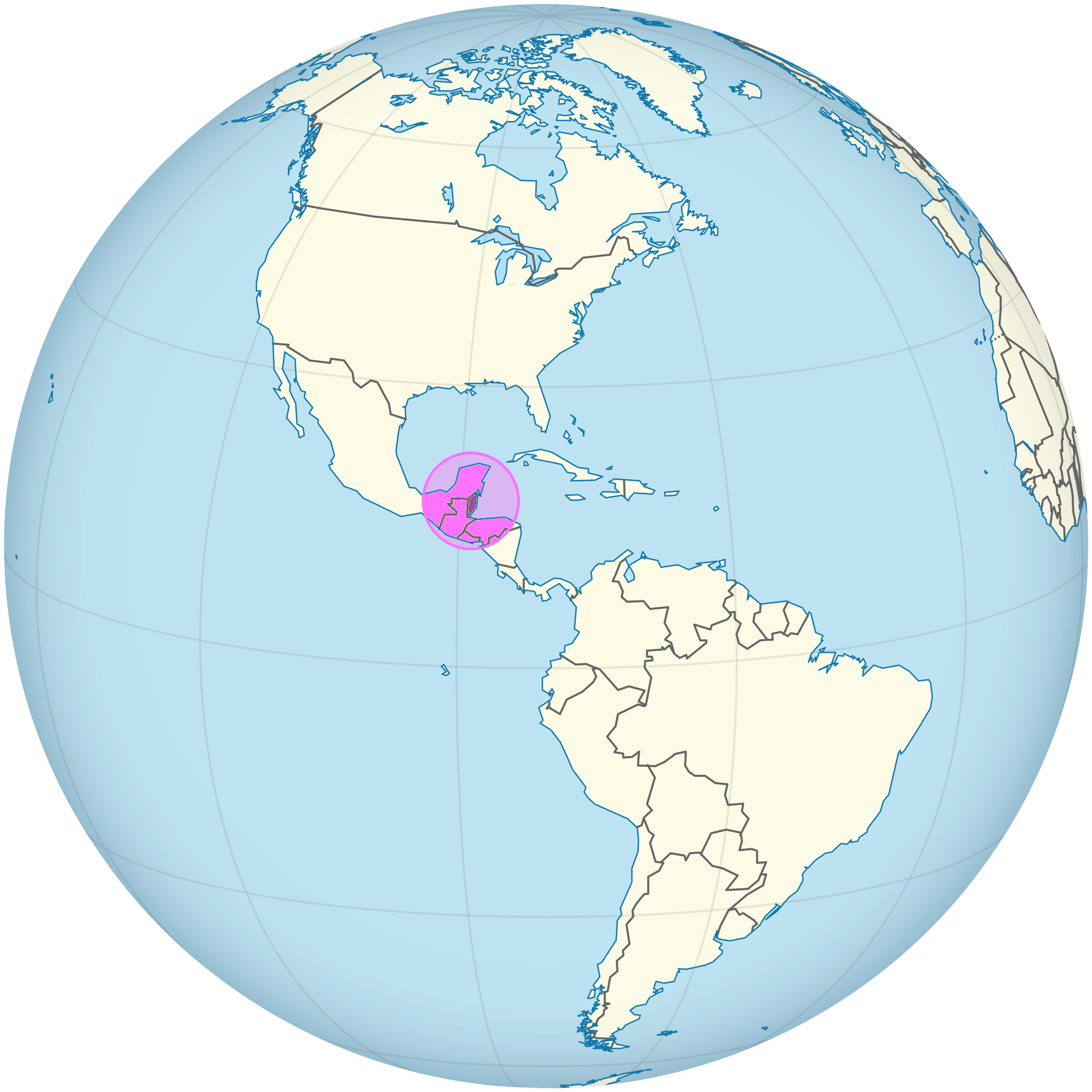 Belice (en violeta en los mapas de arriba y de abajo) se encuentra en Centroamérica, en la costa del Mar Caribe, entre México y Guatemala.