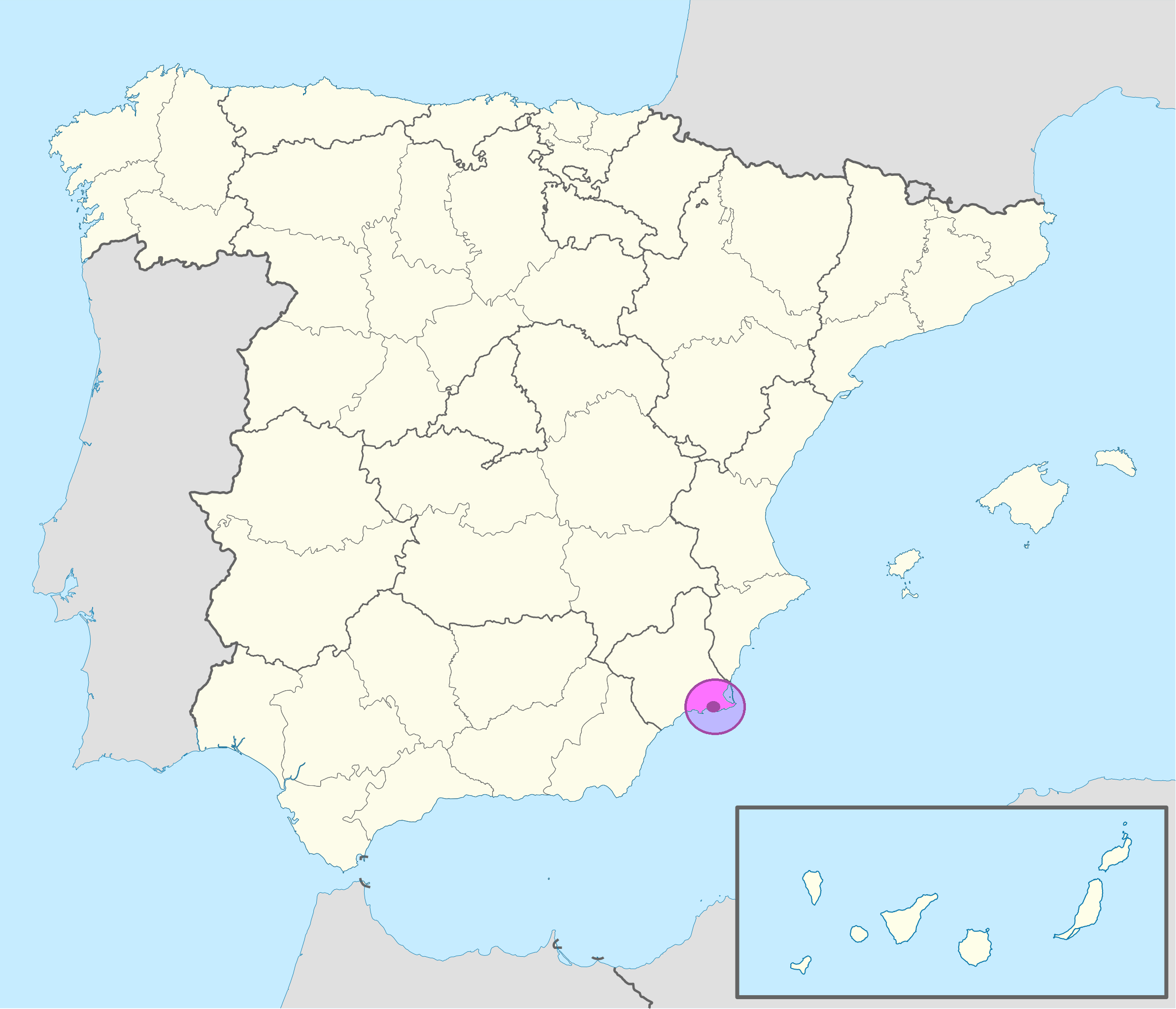 Se encuentra a 49 km de Murcia, a 126 km de Alicante, a 190 km de Almería y a 192 km de Albacete.