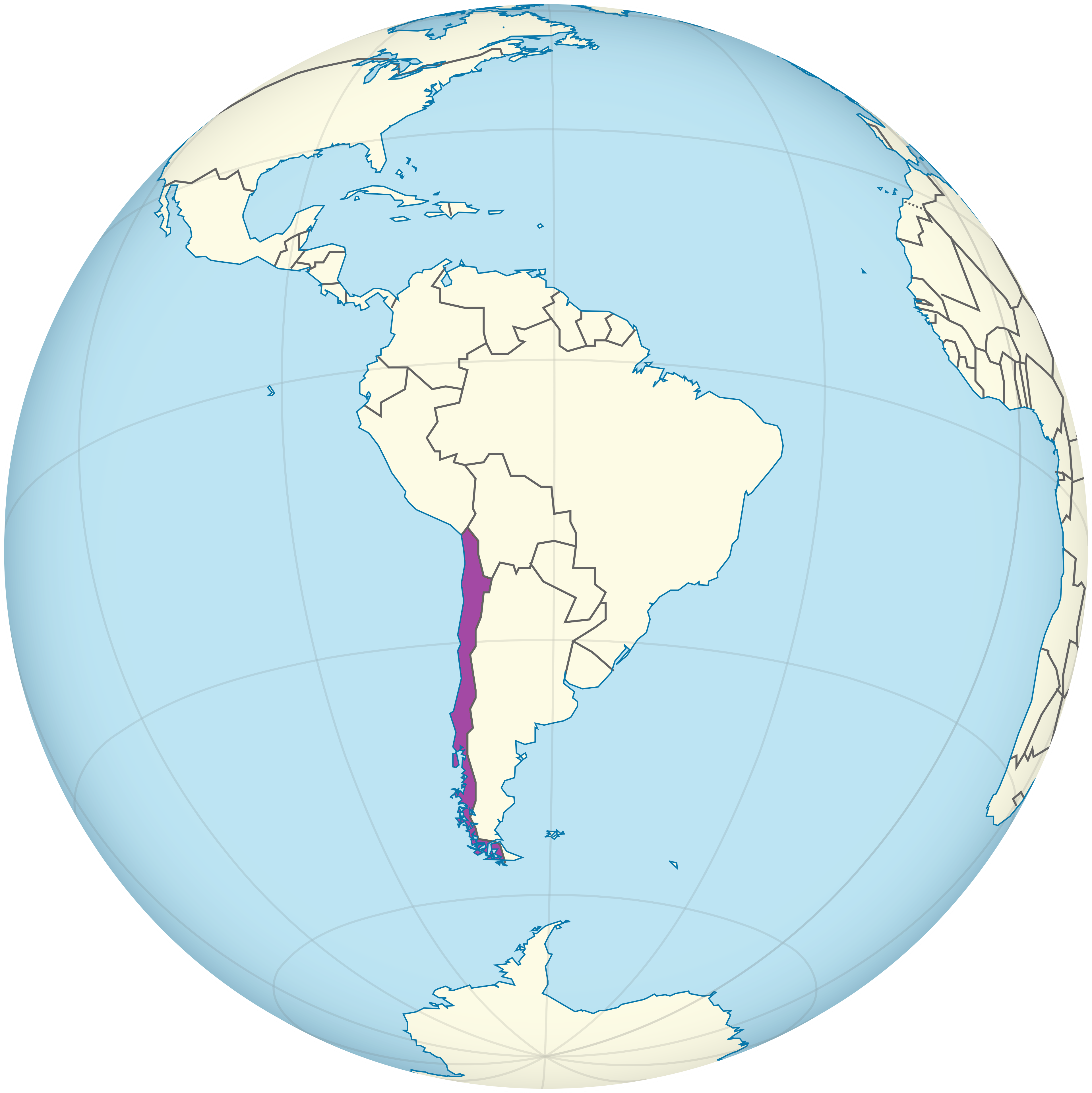 Chile (en violeta en los mapas de arriba y abajo) se encuentra en América del Sur, en la parte suroeste del continente.