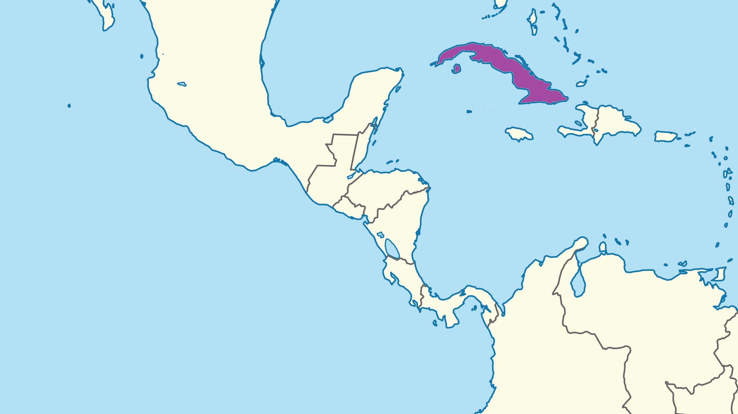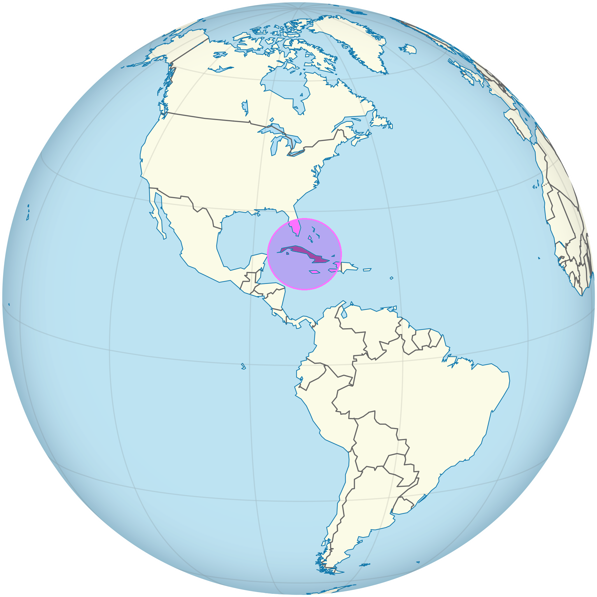 Cuba (en violeta en los mapas de arriba y abajo a la derecha) es un país insular situado, en la región del Caribe y América del Norte. Es la isla más grande del Caribe.