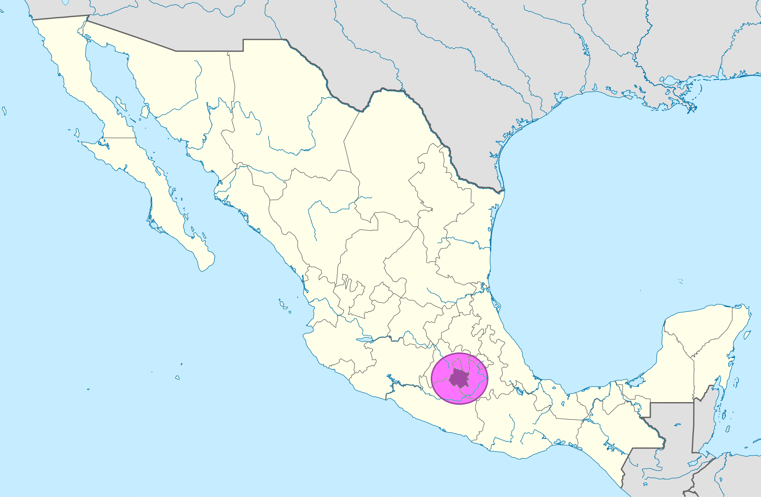 El estado de Morelos (en color violeta en el mapa arriba) se encuentra en la región centro-sur de México, justo al sur de la Ciudad de México.