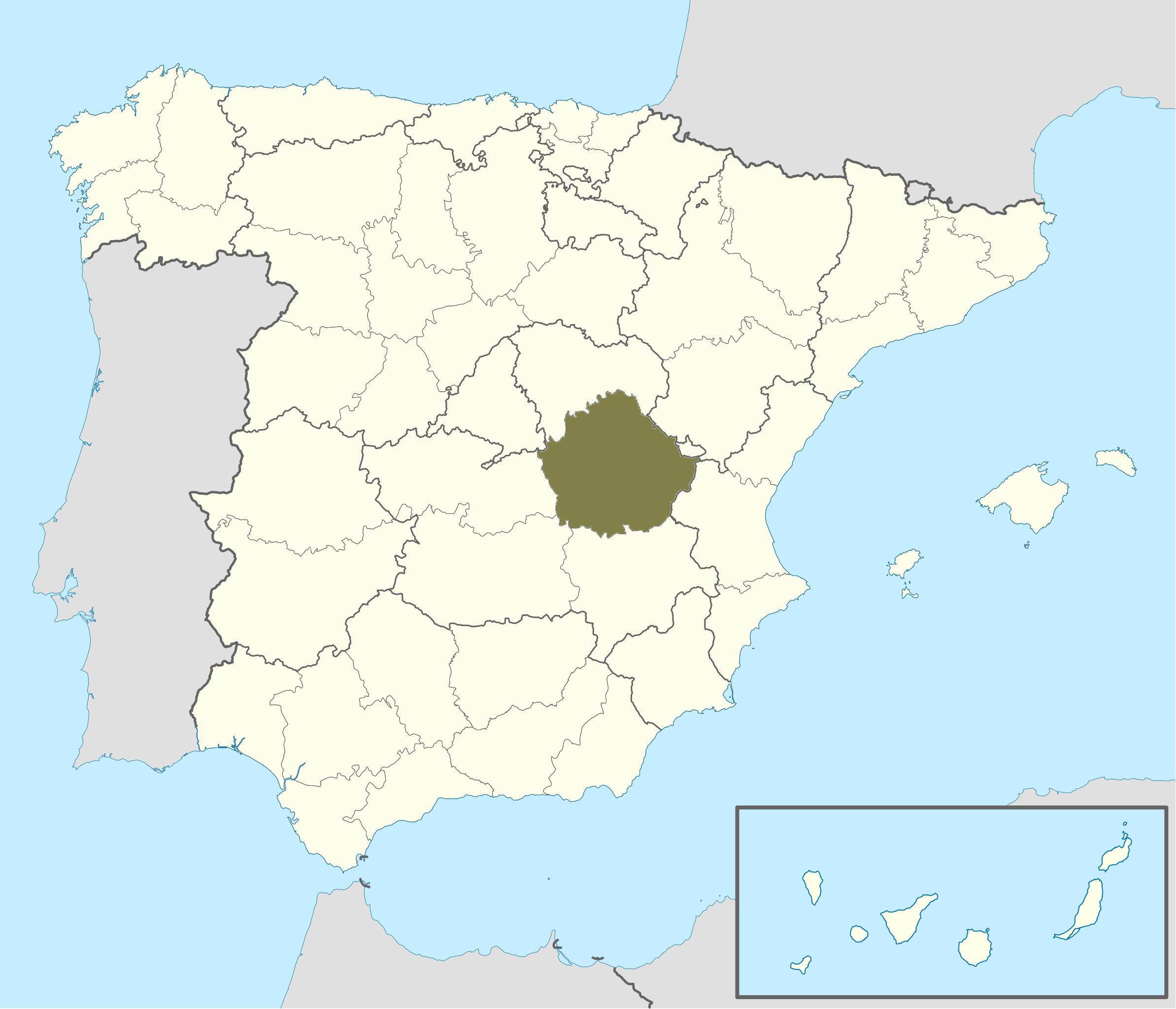 La provincia de Cuenca (en color oliva en el mapa arriba) se encuentra en el centro de España, en la parte oriental de la comunidad autónoma de Castilla-La Mancha.