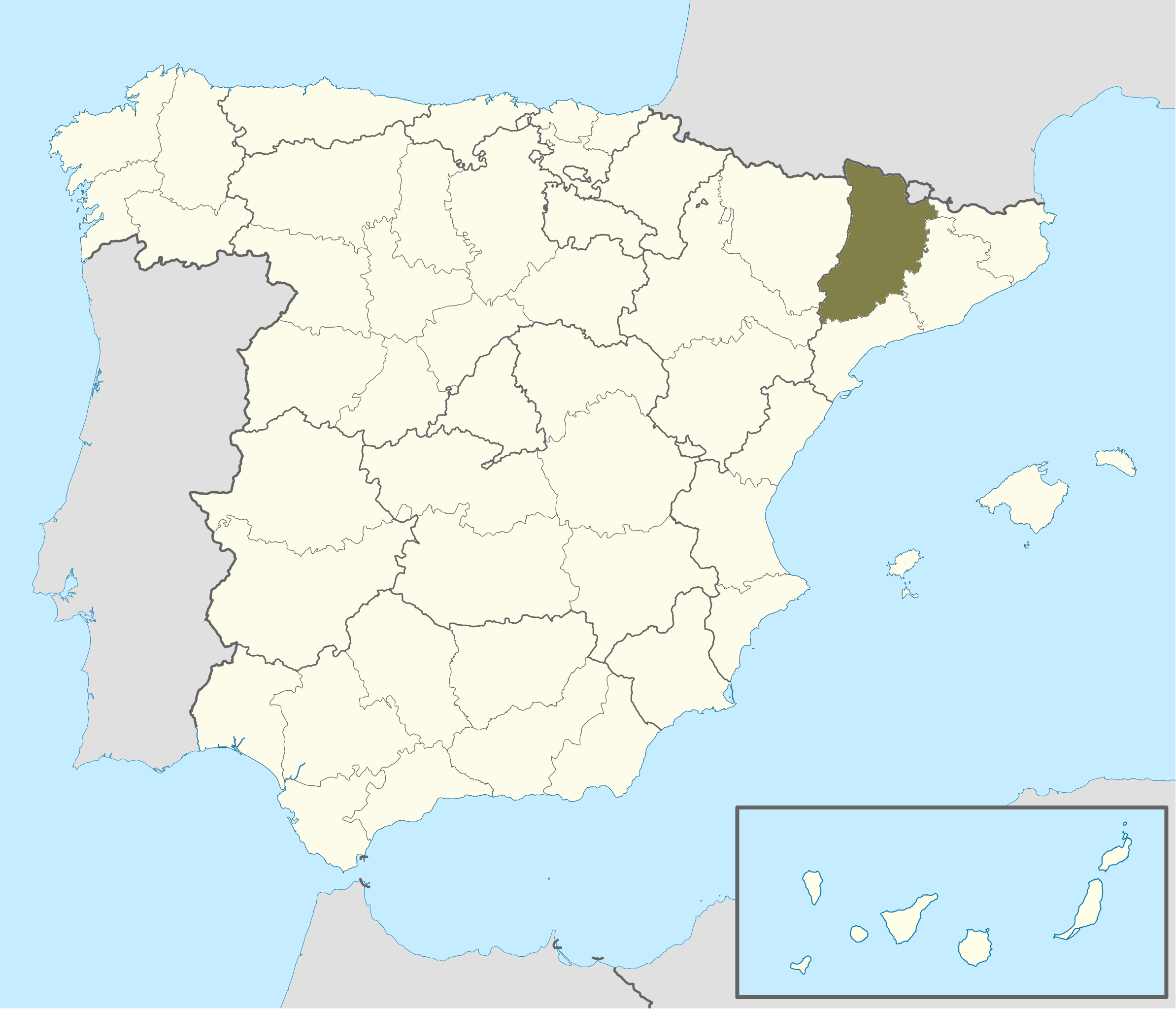 La provincia de Lérida (en color oliva en el mapa arriba) se encuentra en el oeste de Cataluña, en el noreste de España.