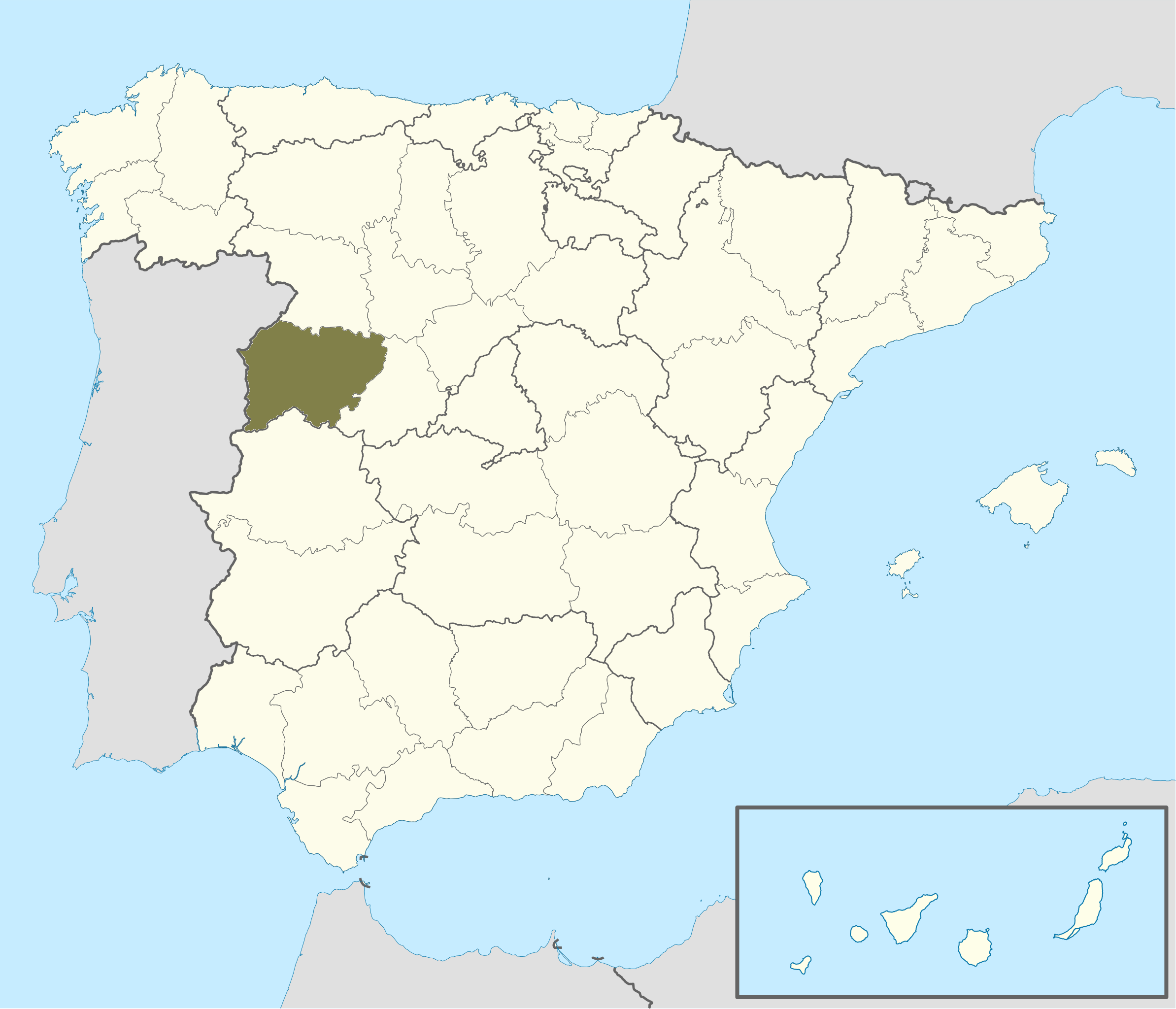 La provincia de Salamanca (en color oliva en el mapa arriba) se encuentra en el oeste de España, en el sudoeste de la comunidad autónoma de Castilla y León.