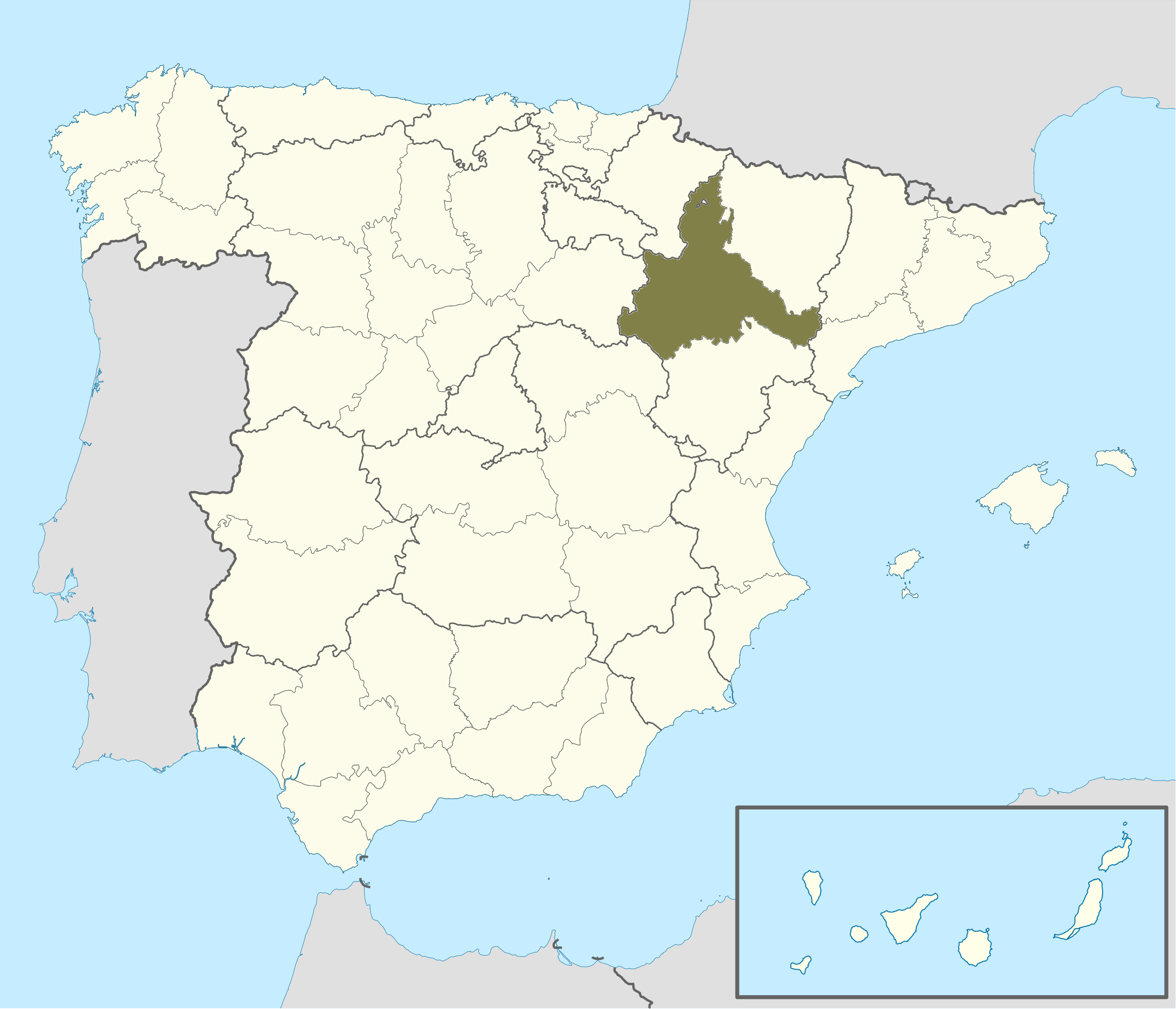 La provincia de Zaragoza (en color oliva en el mapa arriba) se encuentra en el norte de España, en la parte central de la comunidad autónoma de Aragón.