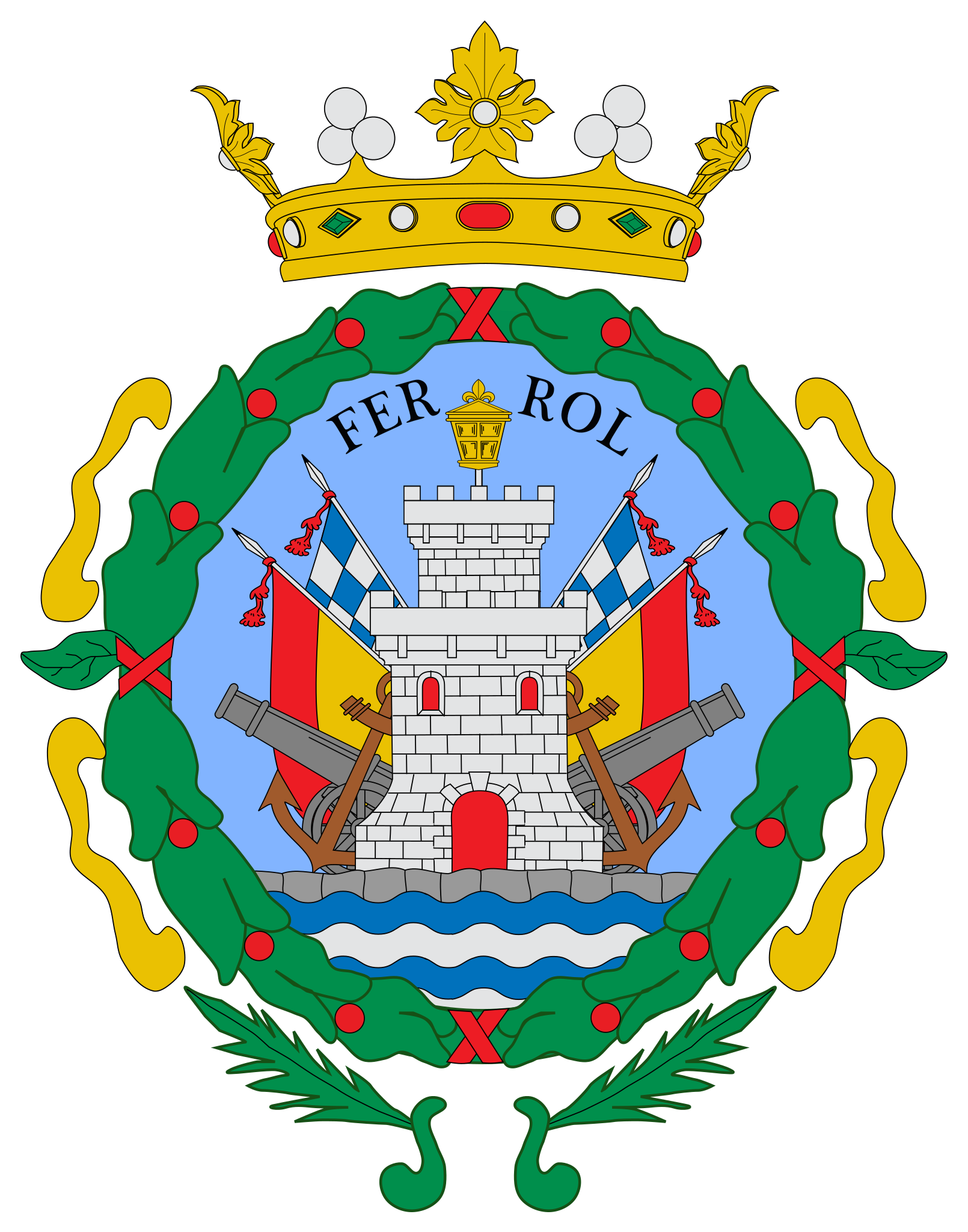La descripción heráldica o blasonamiento del escudo de Ferrol es la siguiente: