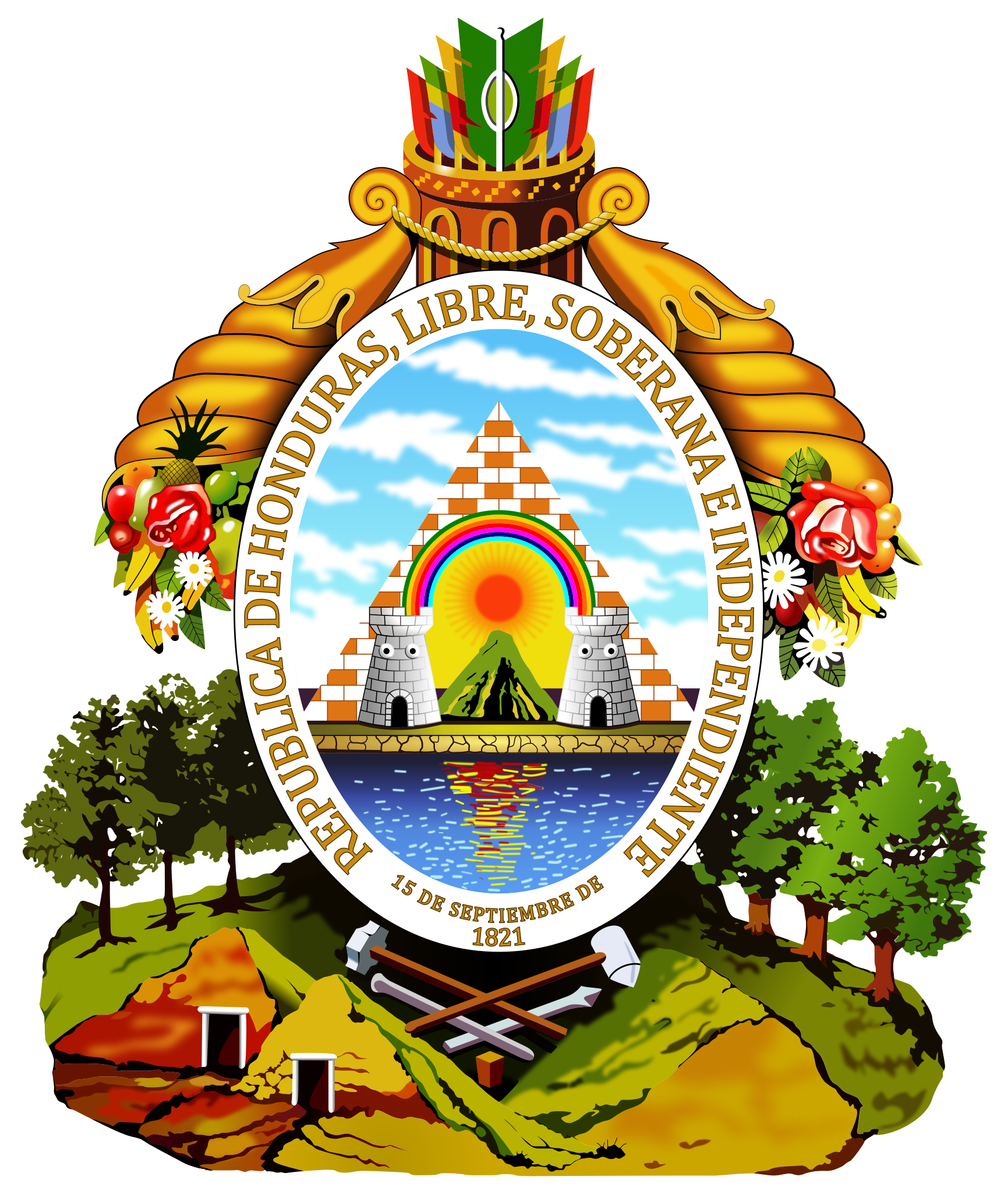 Fuera del triángulo se observa una almazara de roble y pinos, árboles típicos hondureños que simbolizan: