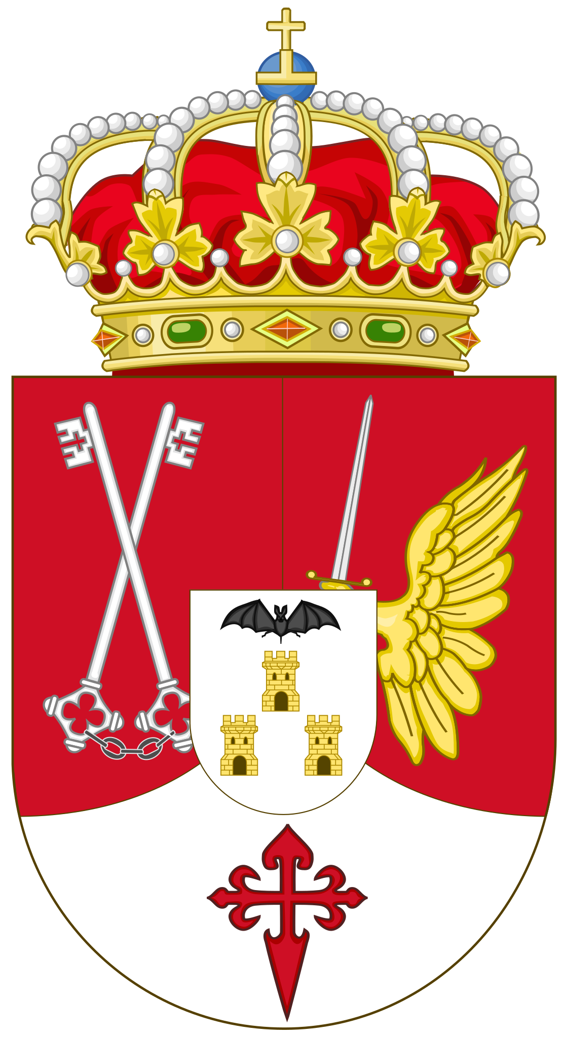 El escudo provincial actual se describe como «Escudo mantelado: El primero, de gules, con dos llaves de plata puestas en sotuer, unidas por una cadena de sable, que son las armas abreviadas de Alcaraz. El segundo, de gules, con una mano derecha alada de oro teniendo una espada de plata guarnecida de oro, que es el emblema de los Manuel, primeros señores de Villena. El tercero, de plata, con una cruz de Santiago de Gules. En abismo, un escusón con las armas de Albacete, que son en campo de plata, tres torres de piedra mazonadas de sable y aclaradas de azur, puestas una y dos, surmontadas de un murciélago de sable. Al timbre corona real cerrada española».
