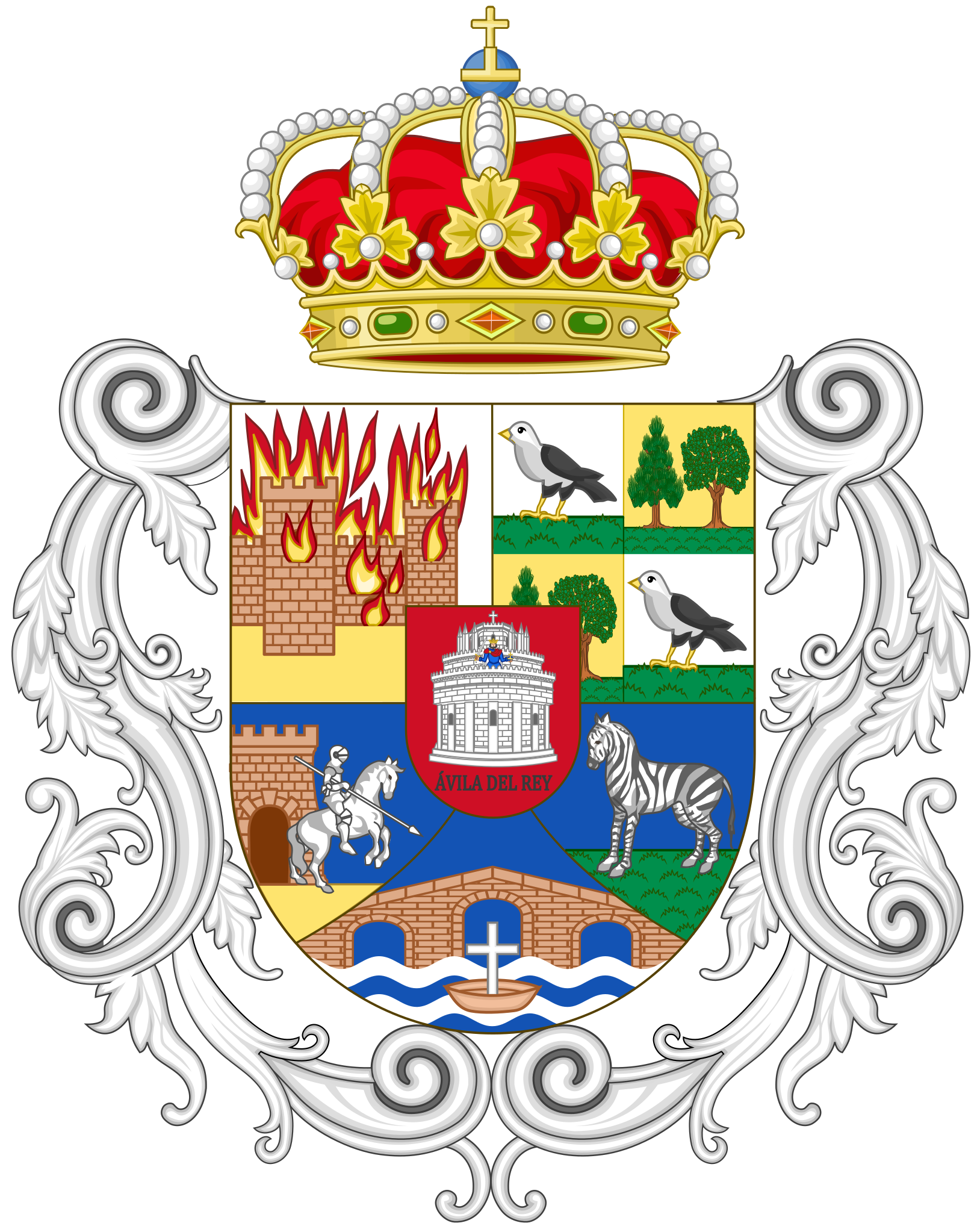 - Ávila (capital): En campo de gules, la catedral de Ávila en plata, y en el cimborrio de la misma, el Rey Don Alfonso, con corona, espada y cetro, todo del mismo metal. En punta, en letras de sable, la leyenda: «ÁVILA DEL REY».