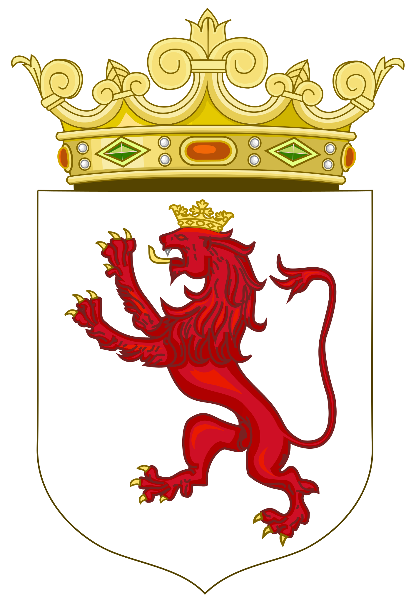 Esto significa que sobre un fondo plateado (color blanco en heráldica), se representa un león de color rojo (gules), coronado, con la lengua (lampasado) y las garras (armado) de color dorado. Encima del escudo se sitúa una corona real antigua, símbolo de la monarquía histórica.