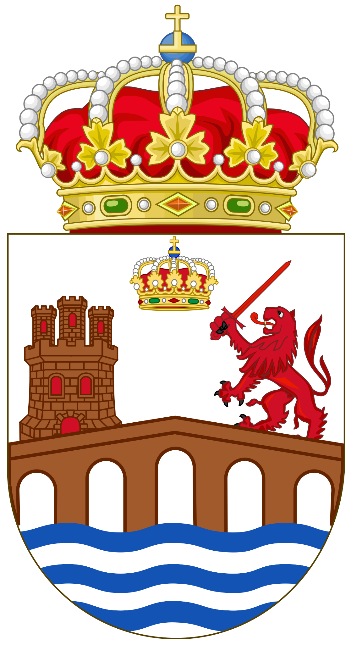 El escudo de la provincia de Orense figura en un campo de plata, sobre ondas de azur y plata que representan un caudal de agua, un puente de cinco arcos de color castaño, sumado en su diestra por un castillo de color castaño, almenado, mazonado de sable y aclarado de gules y a su siniestra, un león rampante, armado uñado y linguado de gules que levanta en su diestra una espada del mismo color, y en el centro del jefe del escudo una corona real cerrada. El escudo está timbrado con otra corona real, forrada de gules, o rojo, cerrada, que es un círculo de oro, engastado de piedras preciosas, compuesto de ocho florones de hojas de acanto, visibles cinco, interpoladas de perlas y de cada una de sus hojas salen cinco diademas sumadas de perlas que convergen en un mundo azur, con el semimeridiano y el ecuador de oro, sumado de cruz de oro.