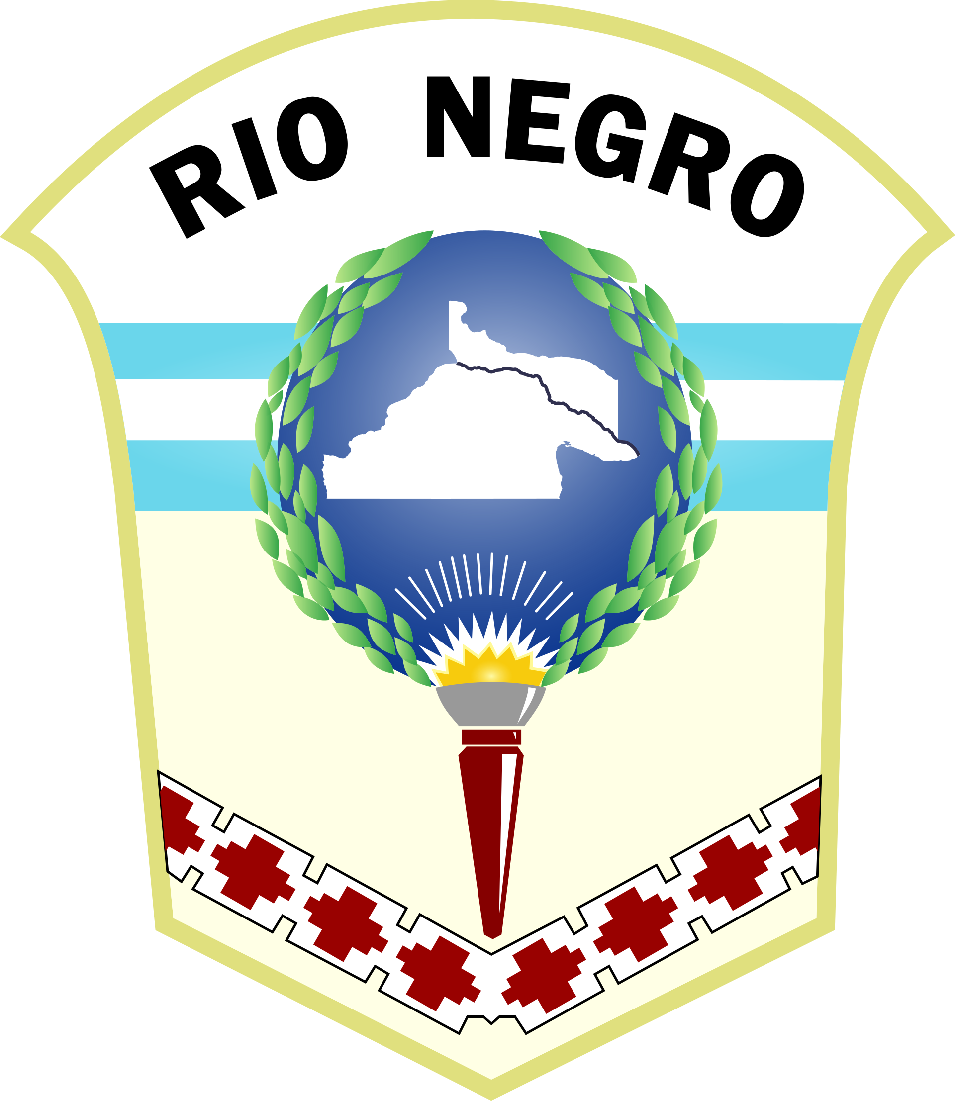 - Mapa de la Provincia: En el centro se ubica el contorno geográfico de Río Negro, cruzado por una línea que representa al río Negro, el curso de agua más importante de la región.