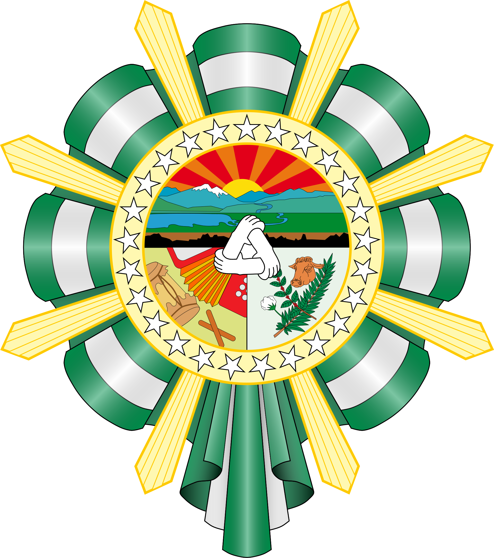 - Parte Inferior Derecha: Exhibe símbolos del sector productivo, principalmente la ganadería y la agricultura.