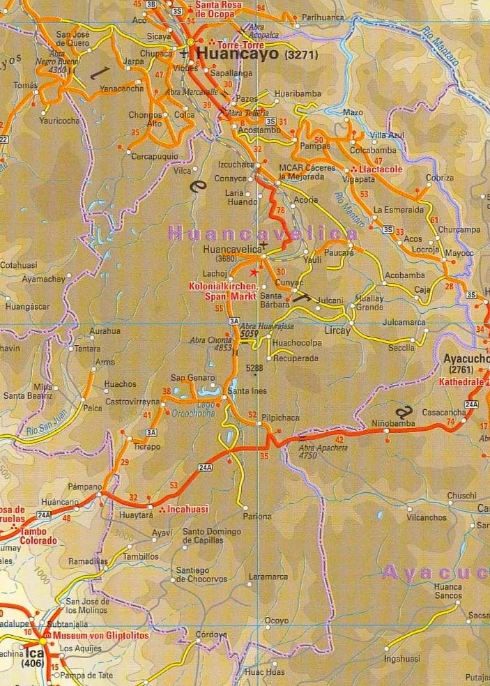 Presenta cinco abras (accidentes geográficos), siendo las más importantes Huayraccasa en la provincia de Huancavelica, Chonta en Castrovirreyna y Pampamali en Angaraes.