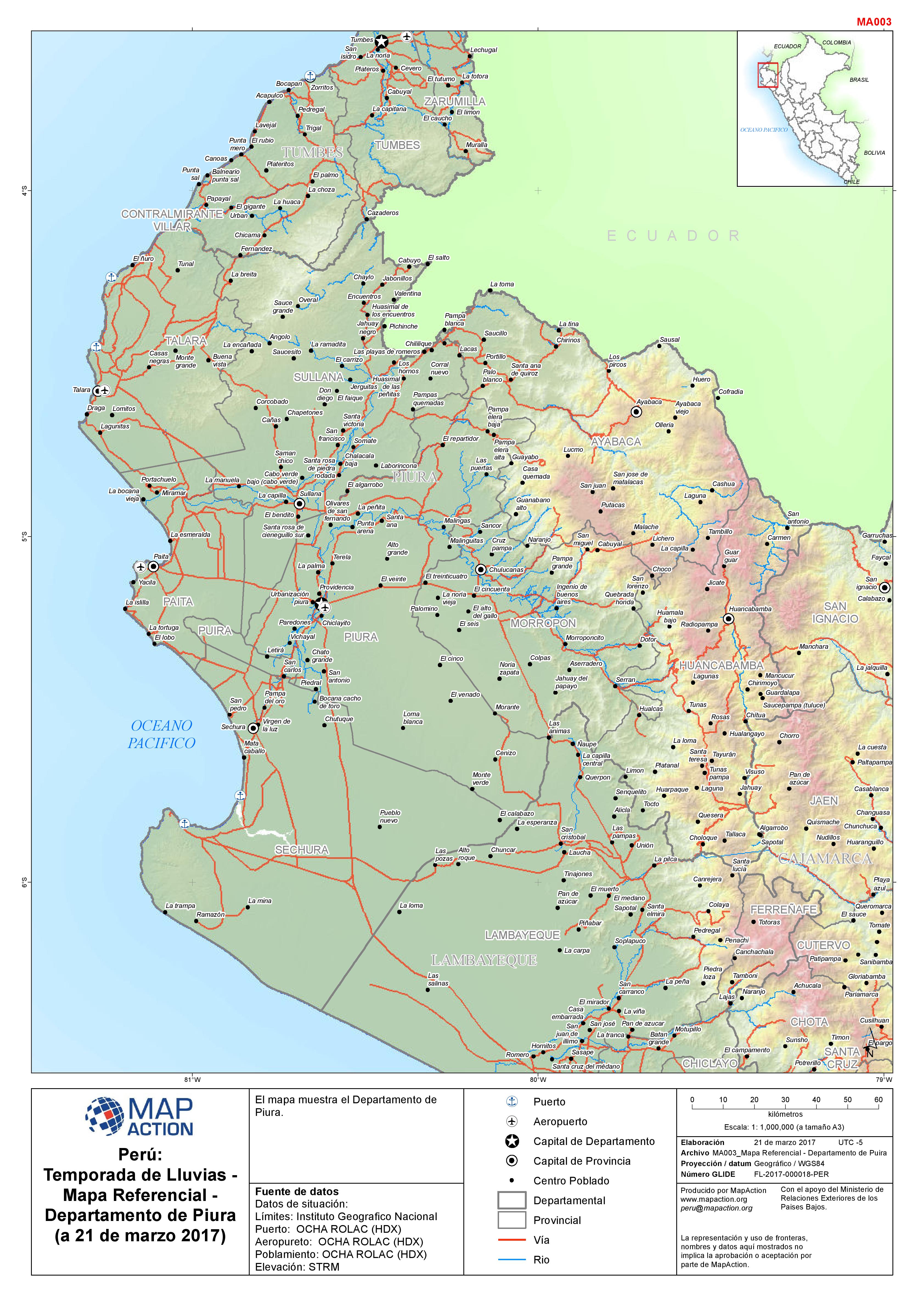 En el departamento de Piura, se presentan dos sistemas orográficos: el de los Cerros de Amotape al noroeste, de baja altitud y una porción de la cordillera de los Andes de recorrido norte-sur en el tercio oriental de esta circunscirpción, y entre ellos se extiende una amplia llanura que domina la mayor proporción de la geografía, que configura la porción llana más ancha de la costa peruana.