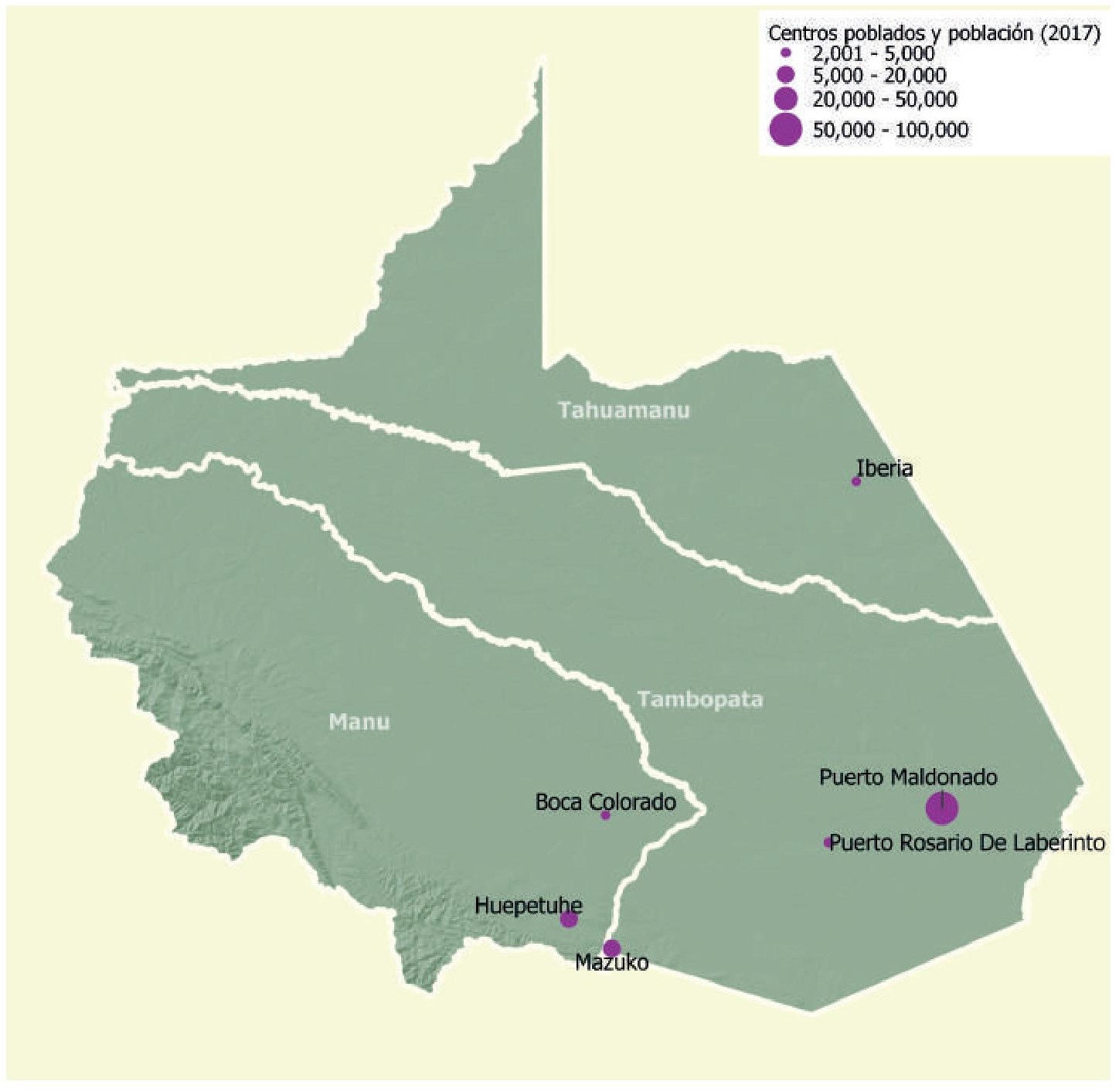 | Las principales ciudades del departamento de Madre de Dios | ||