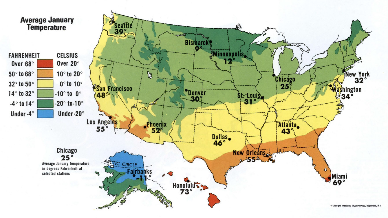 | Alaska | -20 a -5 °C | 5 a 15 °C |
