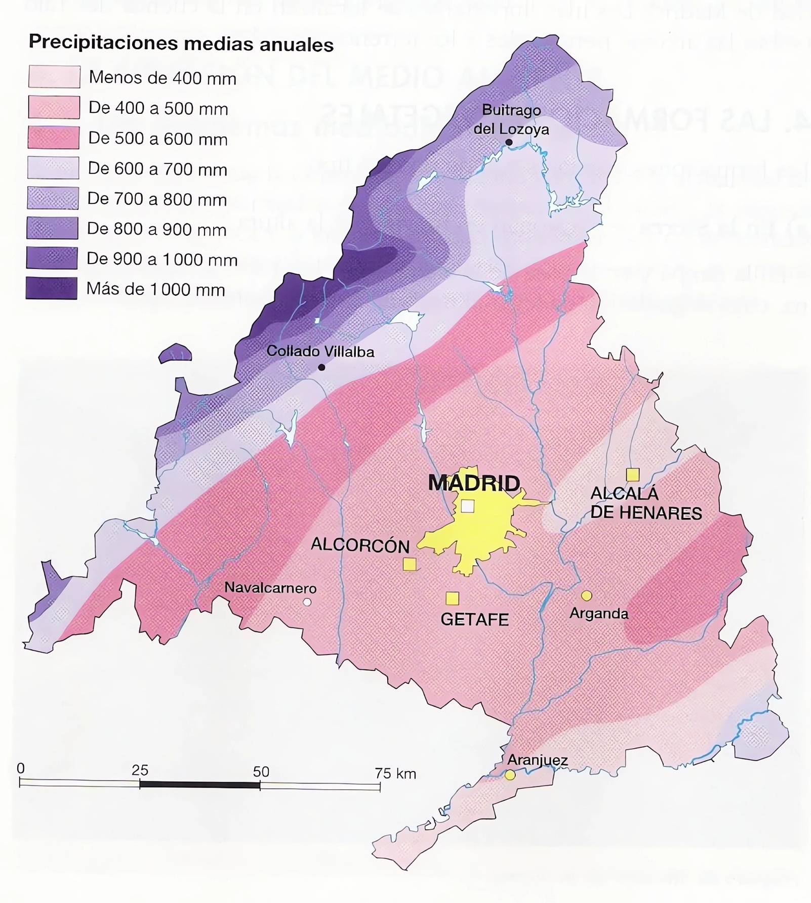 A pesar de su reducida superficie (8021,80 km²), la Comunidad de Madrid presenta dos climas diferenciados, consecuencia de su ubicación entre el Sistema Central y el valle del Tajo.