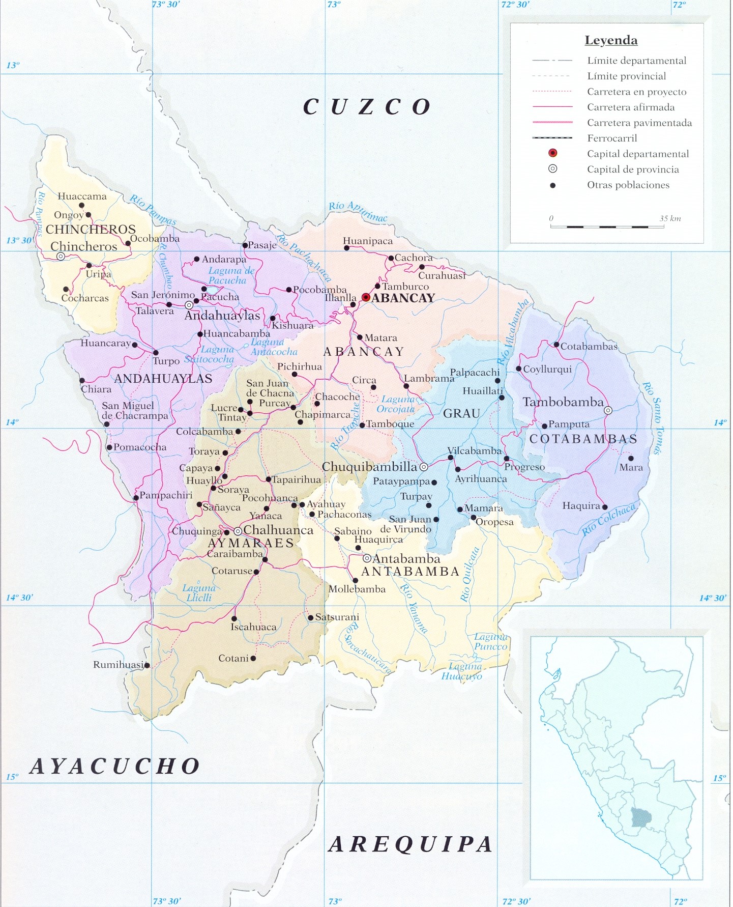 Geológicamente, está situado en la vertiente oriental de la cordillera de los Andes. Su territorio es uno de los más escarpados del país. Es surcado de sur a norte por varios ríos a través de profundos cañones hasta su unión con el río Apurímac en una de las mayores depresiones de la región.