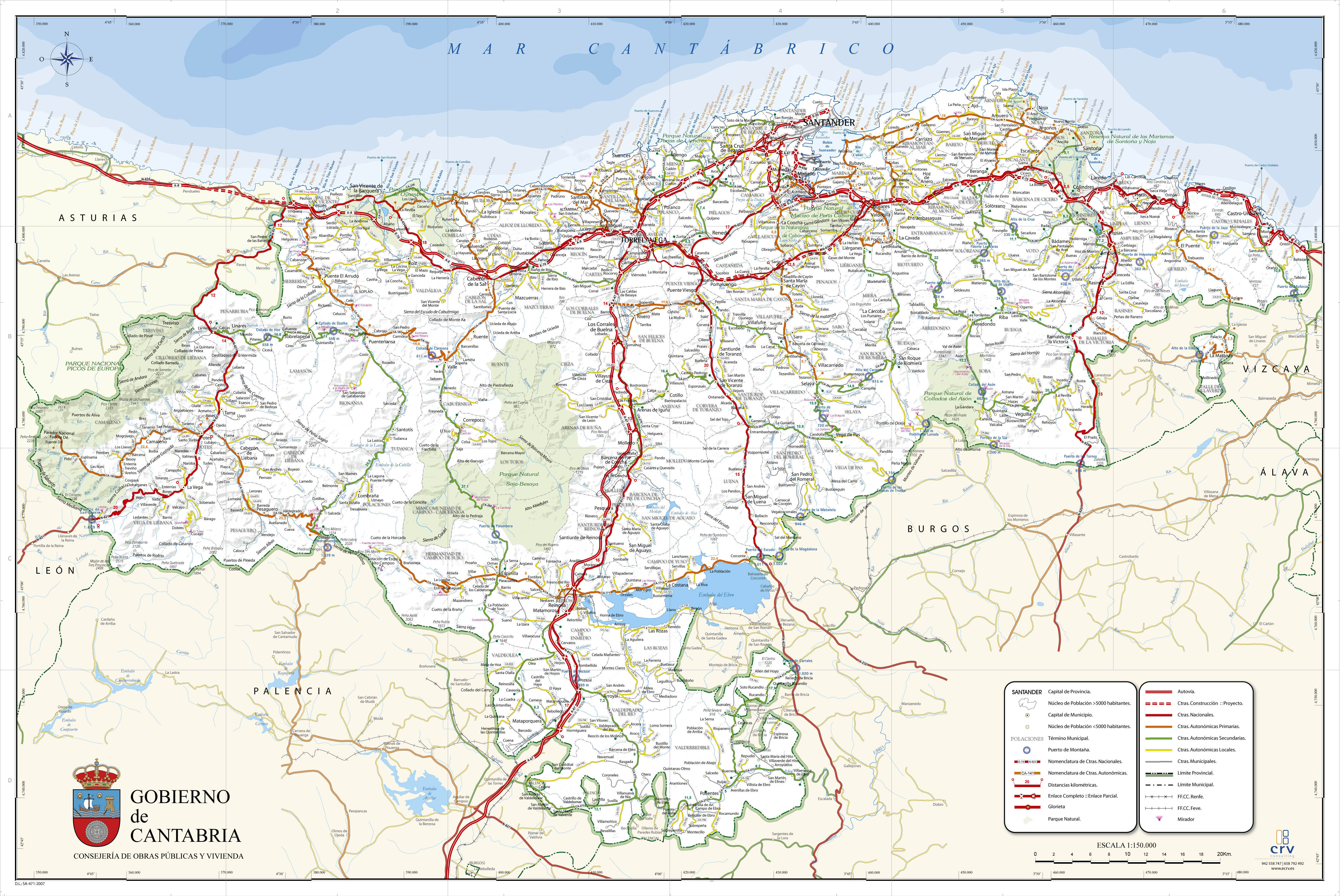Los otros principales corredores en la región perteneciente a la Red de Interés General del Estado (RIGE) son las siete carreteras nacionales que comunican Cantabria con todas las provincias vecinas: