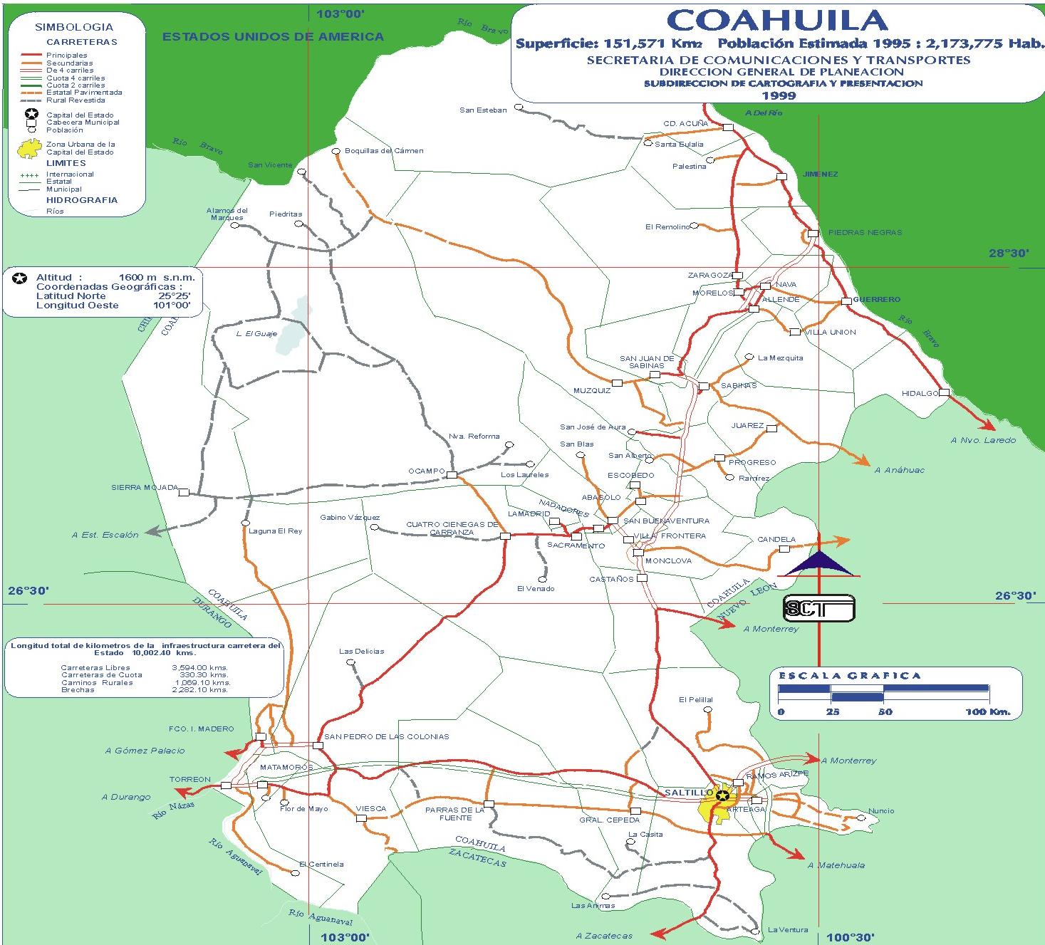 Región Carbonífera: Carreteras que unen Sabinas, San Juan de Sabinas, Múzquiz y Nueva Rosita con Monclova y Piedras Negras.