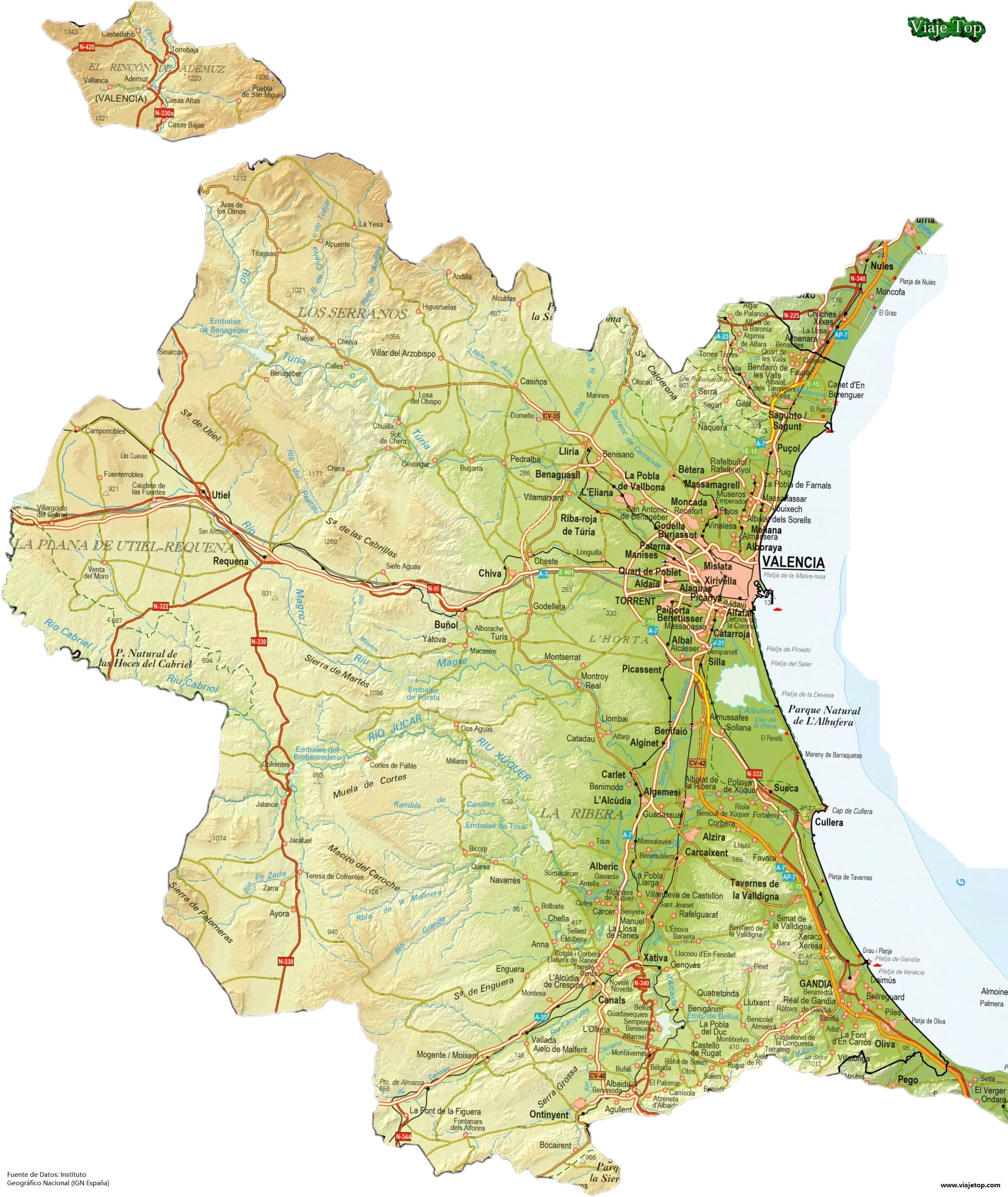 La infraestructura vial de Valencia facilita el acceso a cualquier rincón de la provincia. Algunas de las rutas más relevantes incluyen: