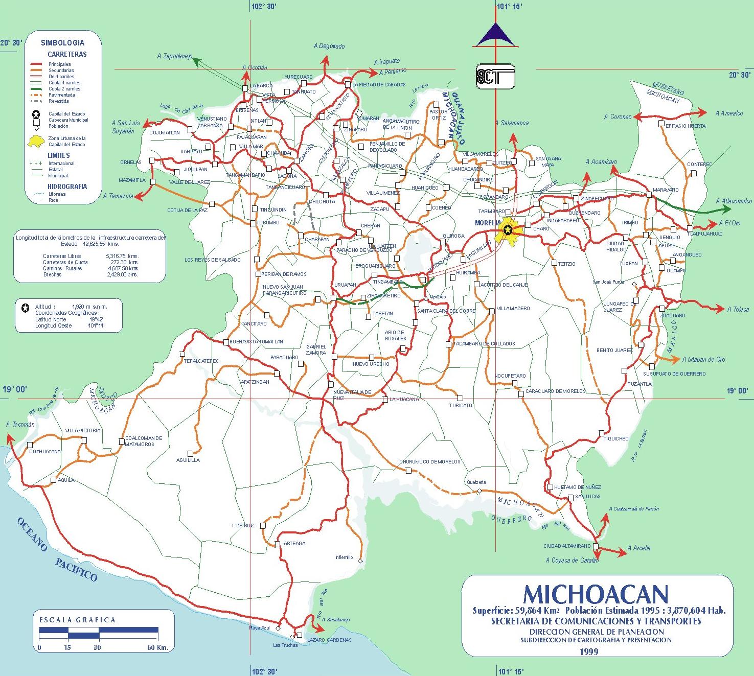 La red carretera de Michoacán comprende aproximadamente 12,500 km de vías.