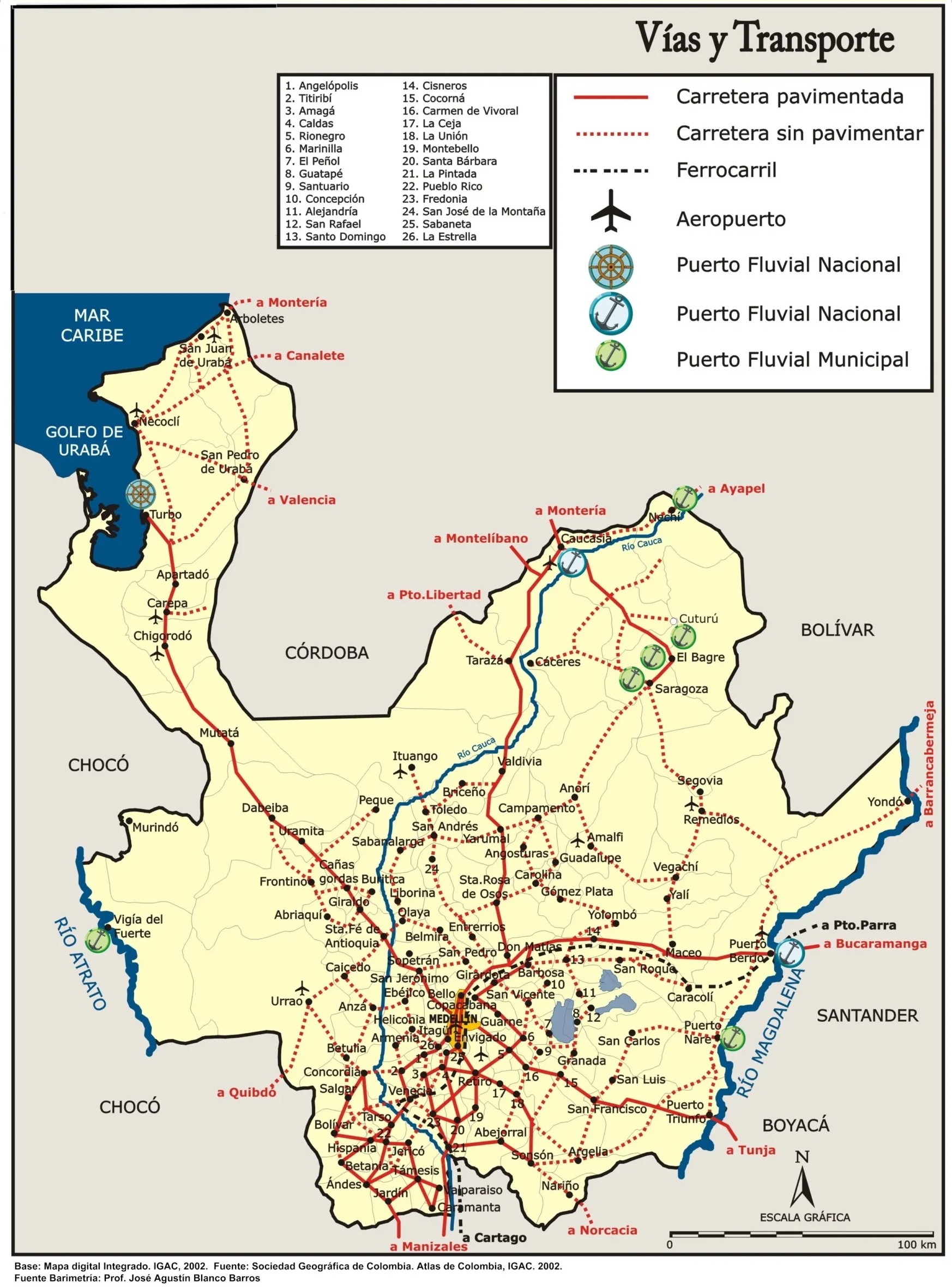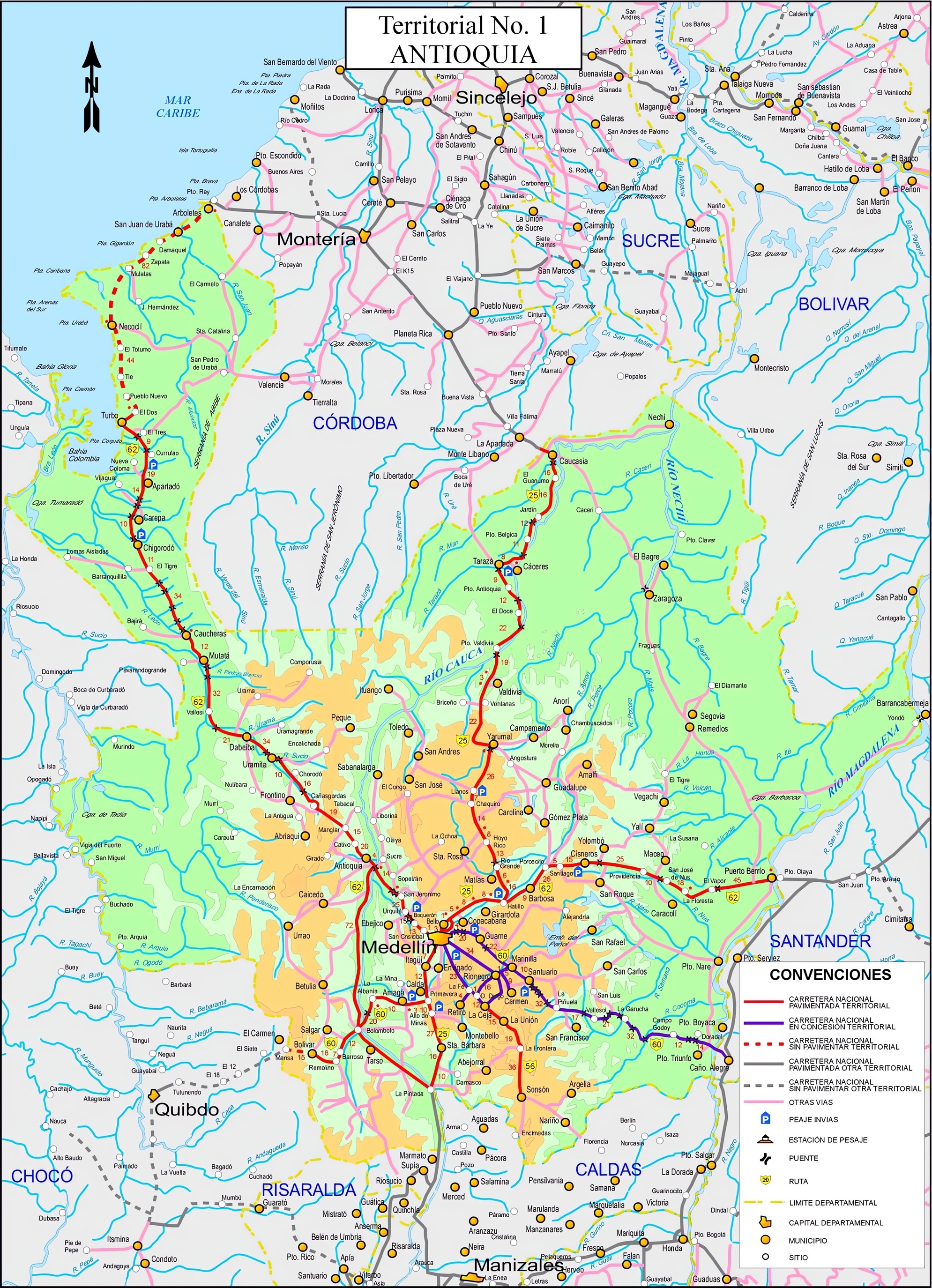 La red de carreteras de Antioquia: