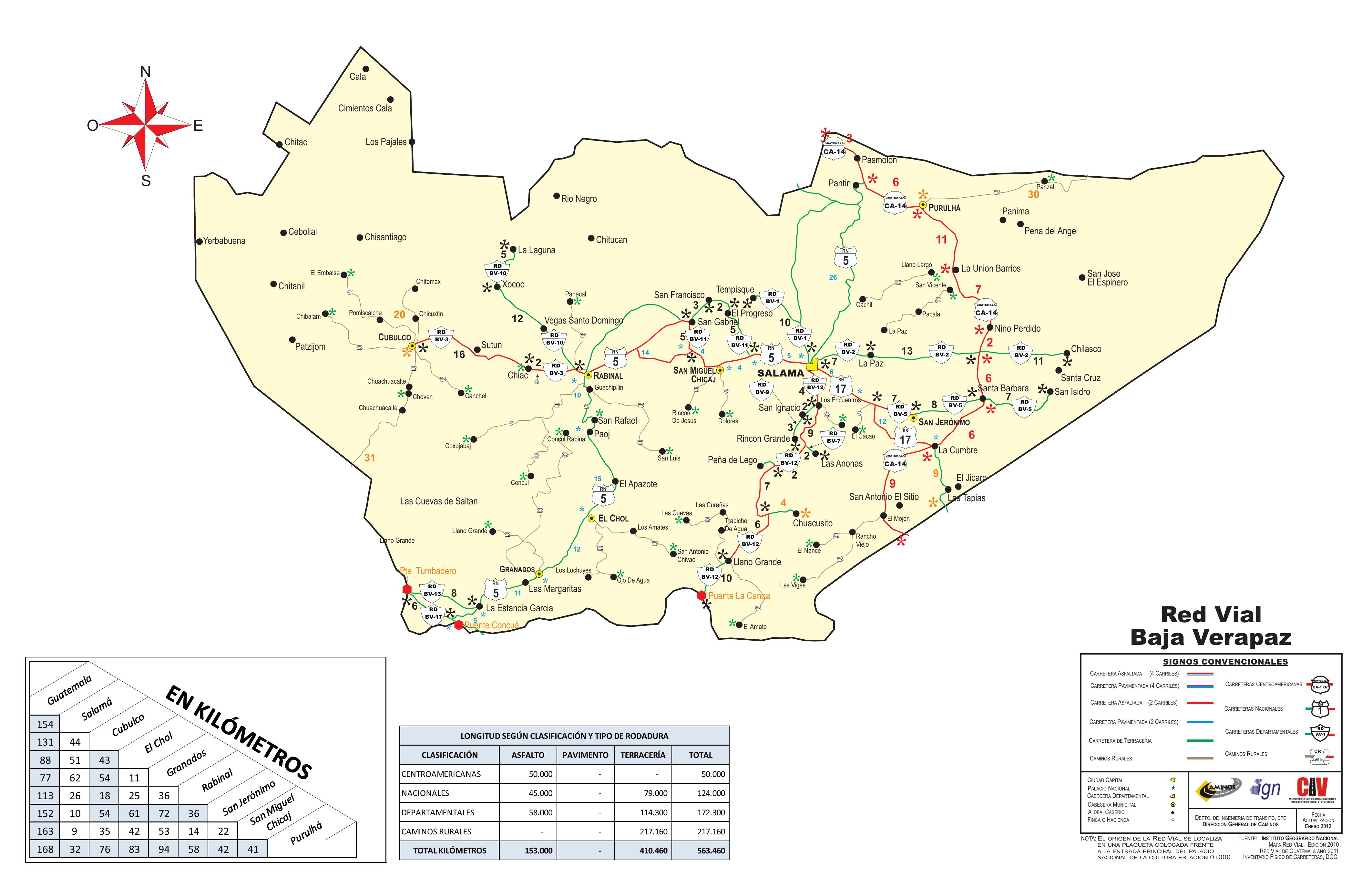 Red vial del Departamento de Baja Verapaz