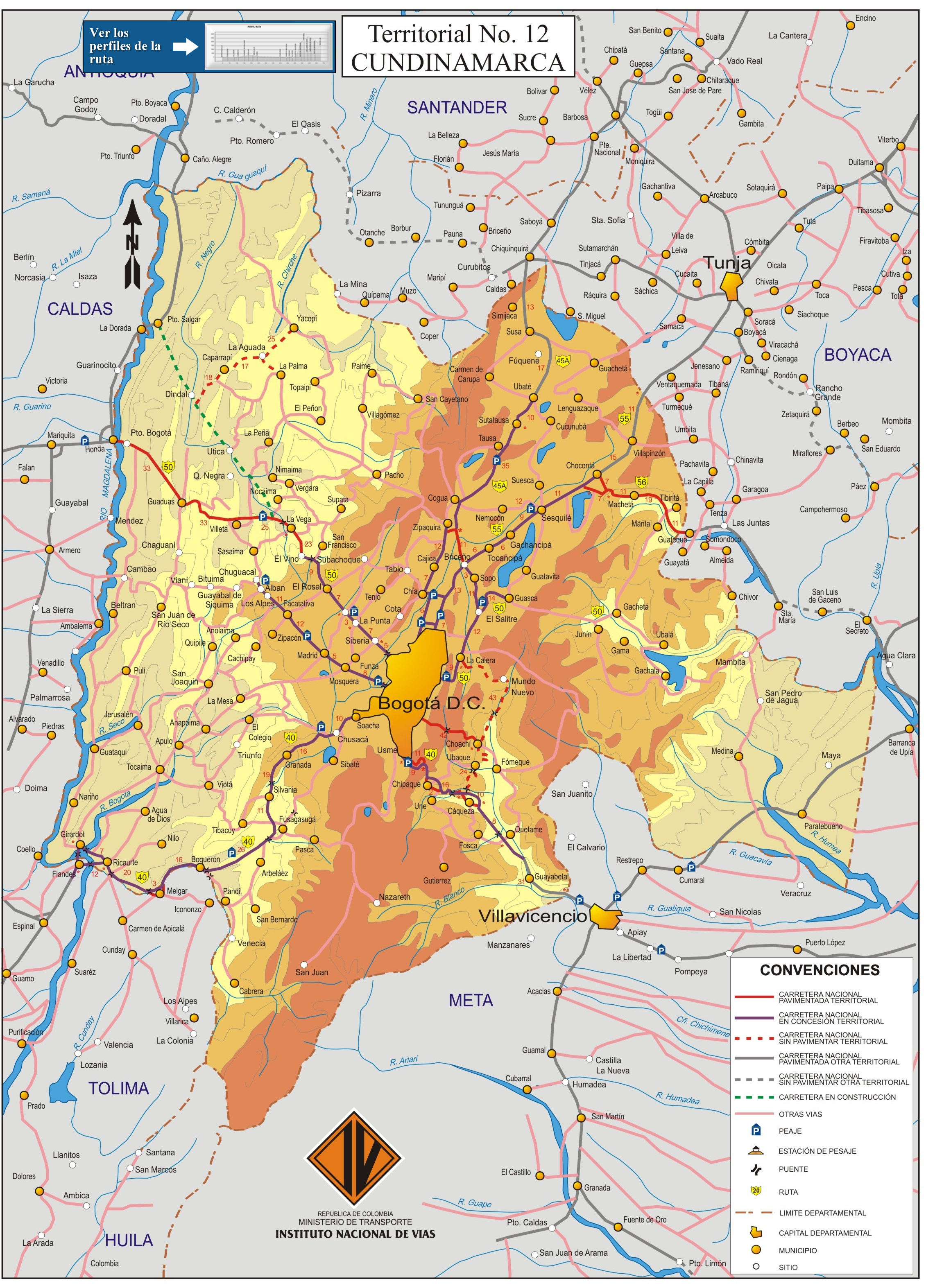 Mapa de carreteras del departamento de Cundinamarca