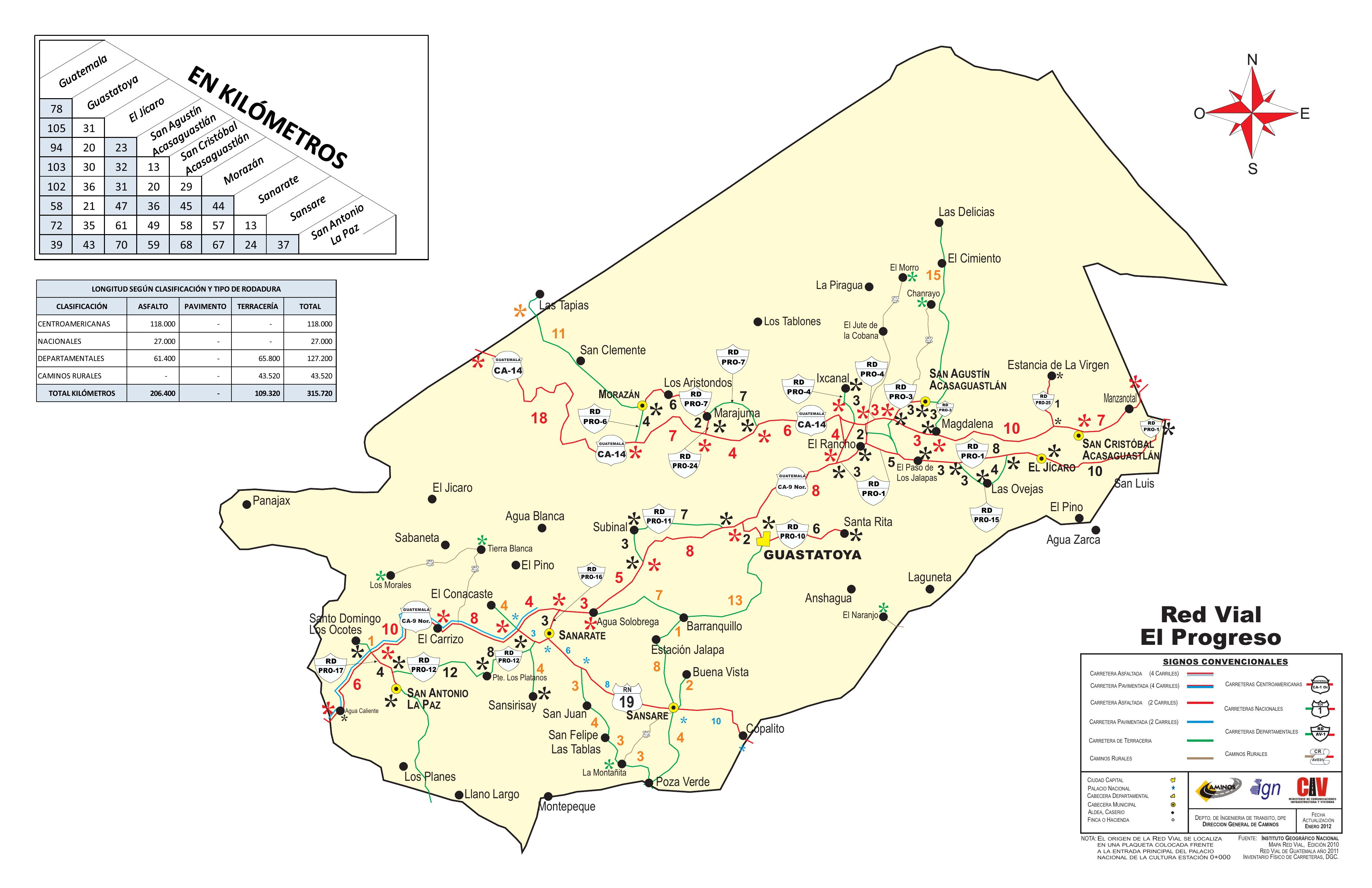 Red vial del Departamento de El Progreso