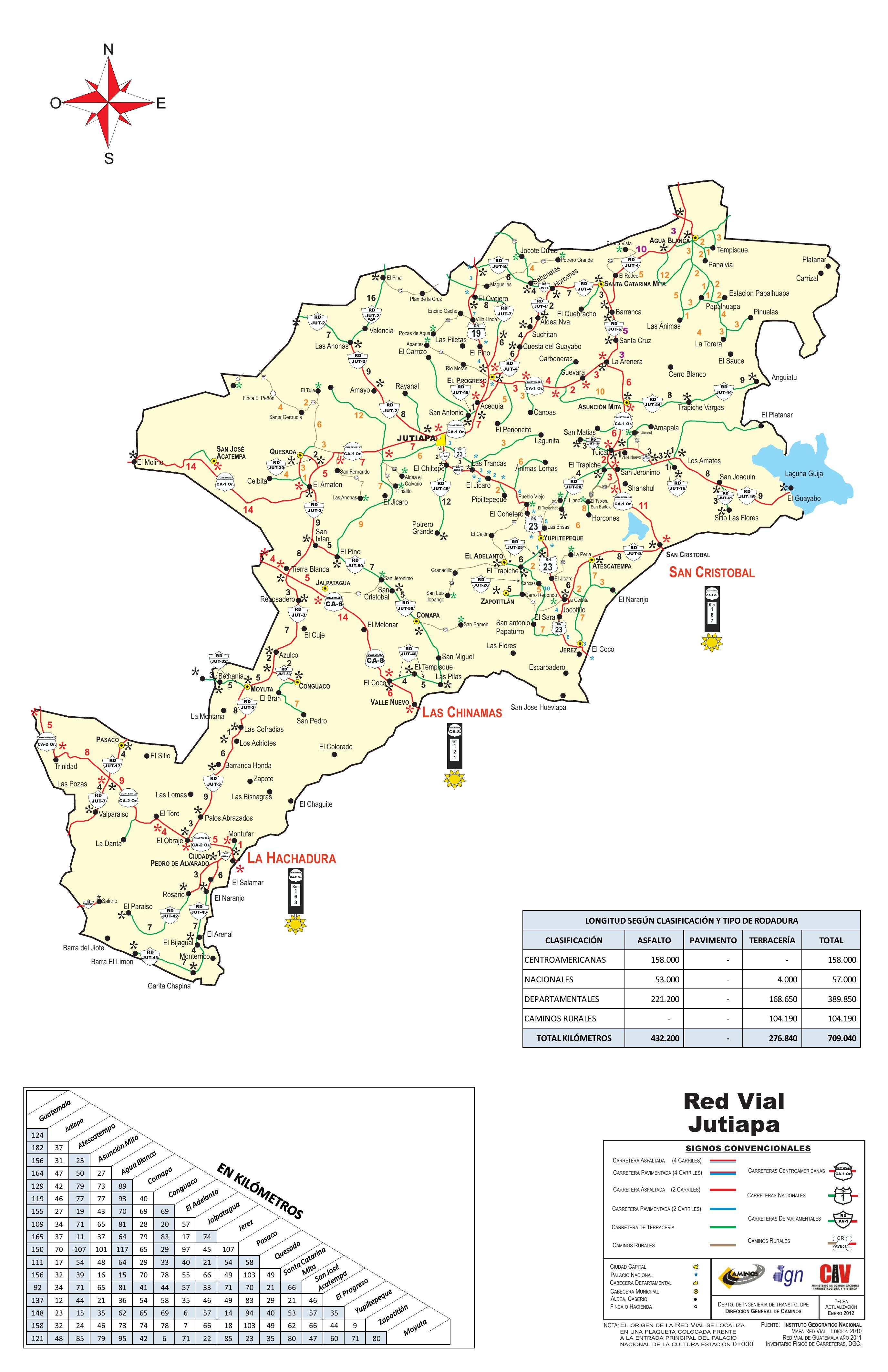 Red de Carreteras del Departamento de Jutiapa (Guatemala): constituida por rutas principales, conexiones, carreteras secundarias y acceso entre municipios.