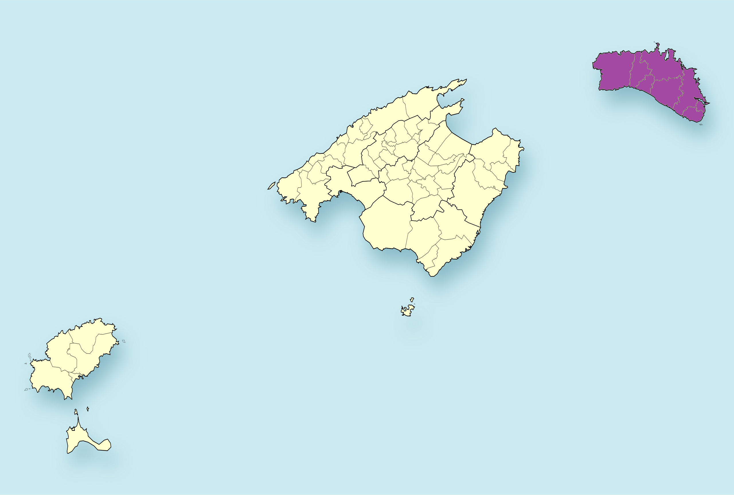 Menorca, con una extensión de 701 km² (kilómetros cuadrados), se ubica en medio del Mediterráneo Occidental (entre los paralelos 39°47′55″ y 40°5′17″ N, y entre los meridianos 3°47′26″ y 4°19’40» E de Greenwich), casi equidistante de tierras argelinas y francesas, así como de la isla de Cerdeña y de la península ibérica, siendo la más septentrional y oriental de las islas Baleares. De hecho, es el territorio español más oriental y el primer lugar donde amanece y anochece en España.